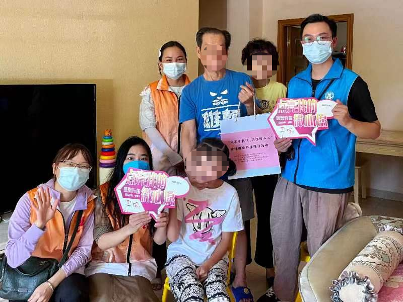 社工和志愿者探访残疾困境儿童。