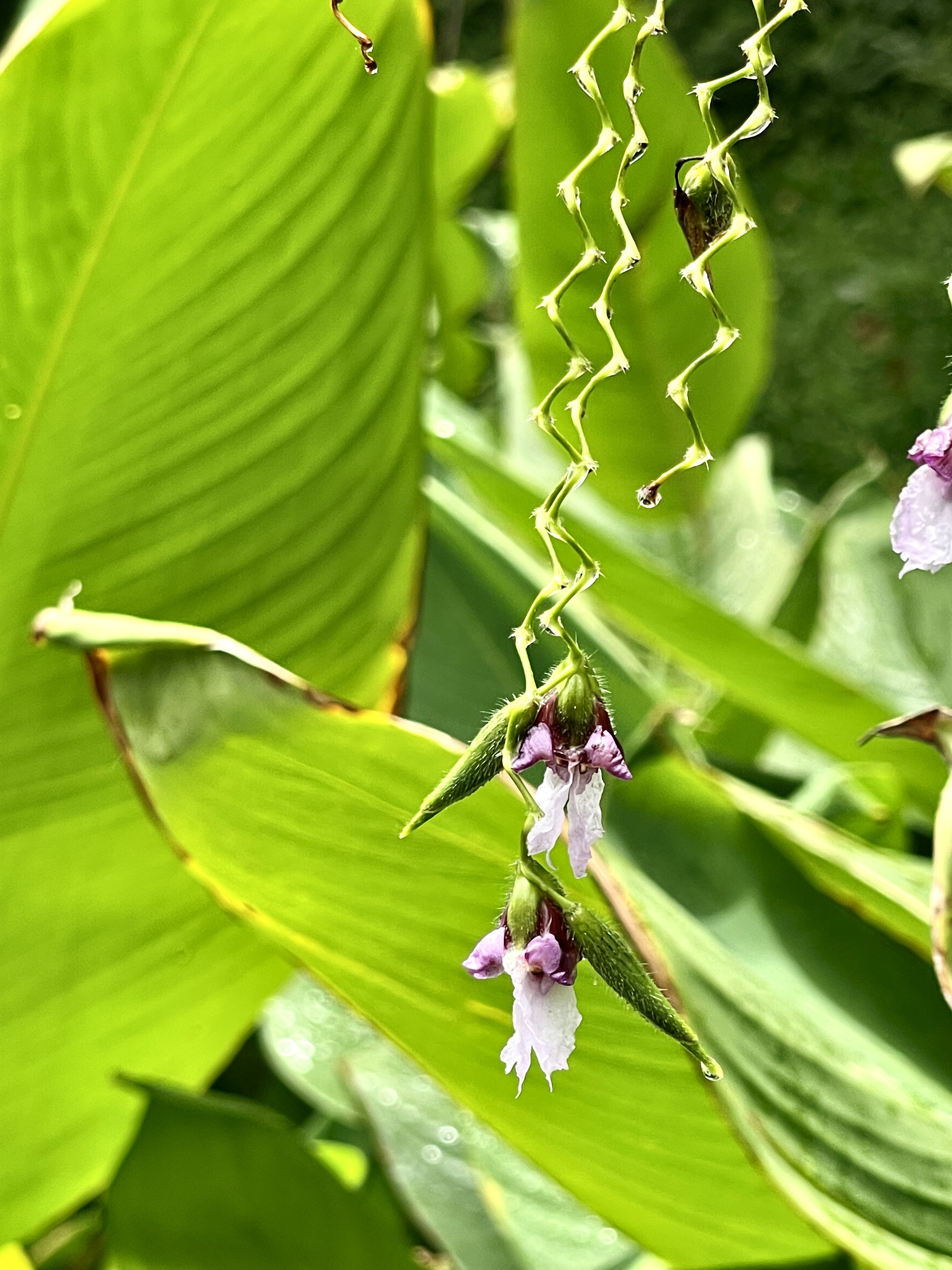 如果你也为再力花的“颜值”点赞,那么细丝状的花亭将会成为“垂花再力花”公认的加分项。与同门姐妹再力花相比,垂花再力花植株更为高大,曲轴状花序下垂,浅紫色的蝶状花朵倒挂在之字形的花梗下,姿态飘逸地晃荡在微风中,仿佛纤细的鱼竿般生动有趣。
