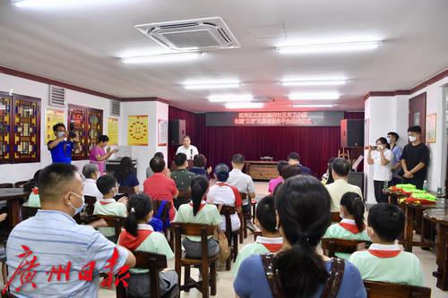 9月7日,坐落在广州市越秀区北京街都府社区的广府文化会馆热闹了起来,越秀区首个社区“五老”(老干部、老战士、老教师、老专家和老模范)志愿者服务平台,都府社区“五老”志愿者服务平台启动仪式在这里举行,6支“五老”志愿服务队伍穿上了自己特有的志愿服务马甲,北京街的志愿者服务队伍又增添了新的力量。近年来,越秀区北京街道精准对标群众需求,充分整合辖区资源,积极打造“家门口的志愿服务圈”,全街各类志愿者共计超过2000人,志愿服务团队50余支,志愿服务阵地80余个,街道获评全国文明单位,都府社区获评全国和谐社区建设示范社区、全国文明城市标兵社区。“一老一小”,情牵两端。在今天都府社区“五老”志愿服务平台启动仪式上,来自越秀区关工委“五老红色宣讲团”成员、红棉老兵罗仲哲为到场的大小朋友们讲述“我和我的祖国”红色故事。
