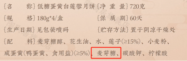 另“无糖”“低糖”月饼,则一般用麦芽糖醇、木糖醇、低聚果糖等甜味剂代替蔗糖、白砂糖。
