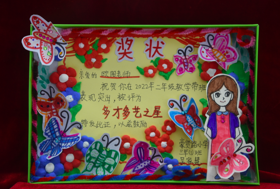 随后,各个班级为老师颁发了由学生自主设计的奖状。“最优秀老师”“最棒老师”“最负责老师”“最可爱老师”……一张张别出心裁的奖状藏满了学生对老师的祝福与感谢。