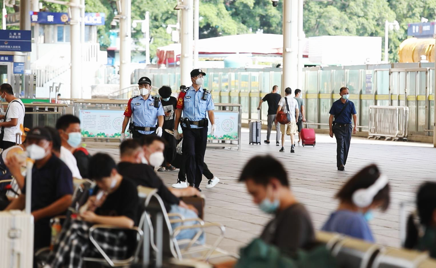 “我们从处机关抽调40余名警力前往广州、广州南站,另从沿线所队抽调12名精干力量、警犬队3人3犬,编入广州南站派出所勤务力量,特警支队加强武装值守和值备力量,全面提升站场见警率、管事率及震慑力。”广州铁路公安介绍,广州南站派出所从日勤、执法办案队抽调15人组成青年突击队,重点加强一楼东西售票厅、三楼改签处、东西平台等重点区域清理巡查,坚持“零容忍”态度,对站区各类突出治安问题做到露头就打、除恶务尽。