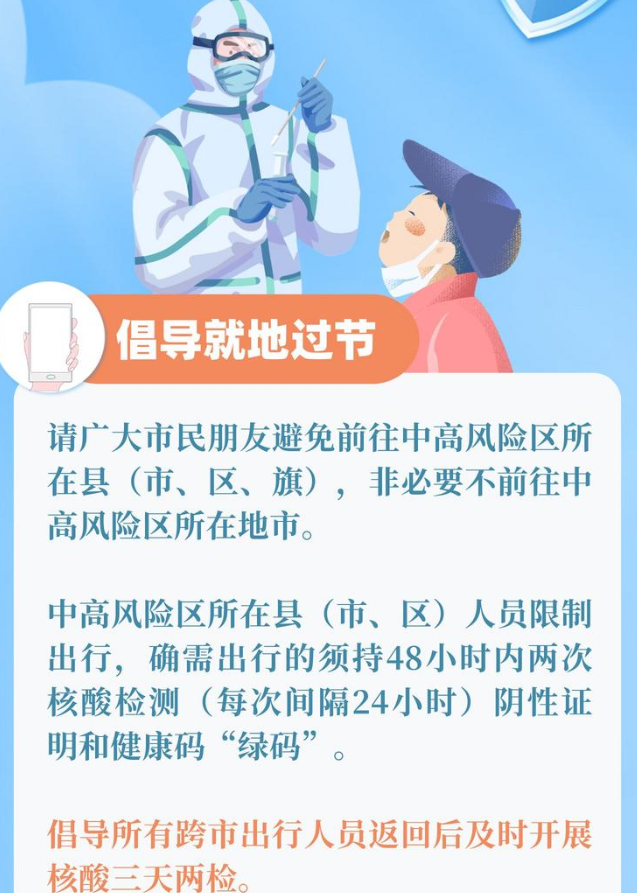 【广东:倡导就地过中秋,返程需“三天两检”】中秋假期人员出行、聚会等活动明显增多,疫情防控压力进一步增大。记者从广东省新冠肺炎疫情防控指挥办了解到,为切实防范疫情输入和传播风险,该办向广大市民朋友发出提醒,详情点击>>>