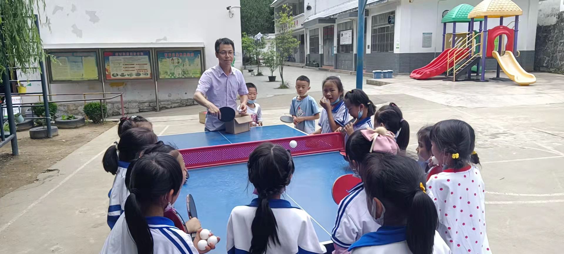 为了让当地孩子能上英语课,张良友还对接了中山大学国际翻译学院,招募了多名本科生为凤山镇的孩子启蒙英语。如今凤山镇13所小学的孩子每周都能上2节英语线上课。红塘村的孩子们之前也没有上体育课。张良友亲自担任起了老师。“我自幼酷爱乒乓球,在家时也教儿子打球。现在,只要我没外出,就会教红塘村的孩子们打乒乓球、跳绳。陪他们打球时,我也会情不自禁地想念我的孩子乐乐。”