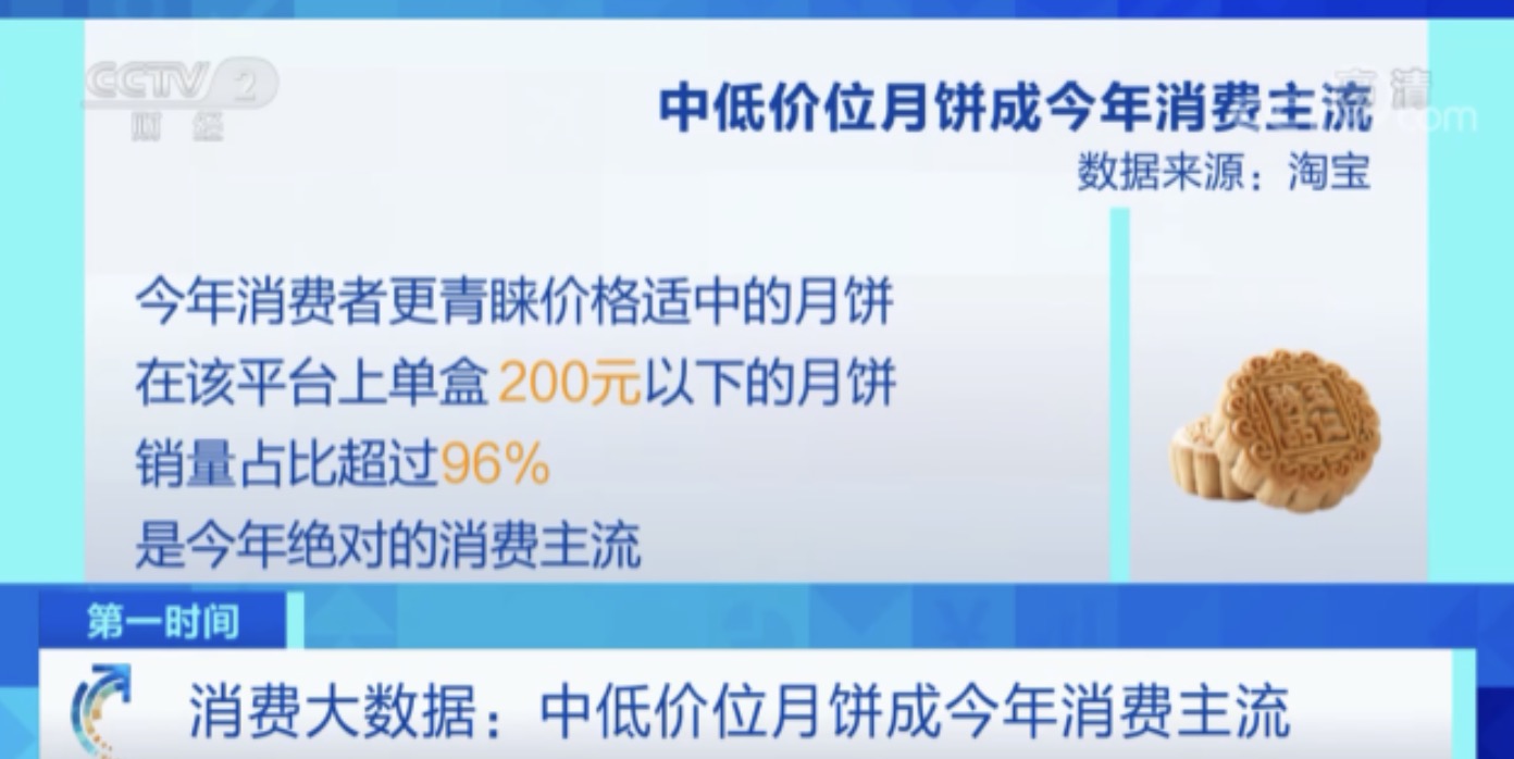 电商平台的数据显示,今年消费者更青睐价格适中的月饼,在该平台上单盒200元以下的月饼销量占比超过了96%,是今年绝对的消费主流。