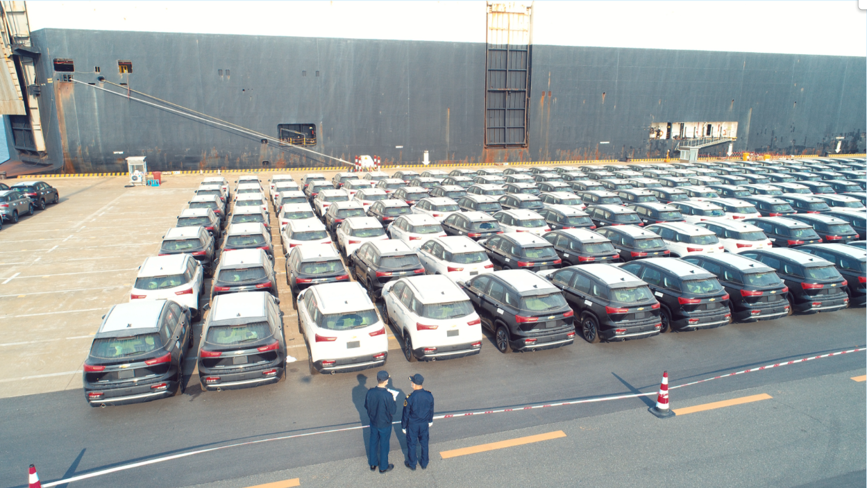 广州海关所属南沙海关关员在南沙自贸试验区对出口汽车进行监管。