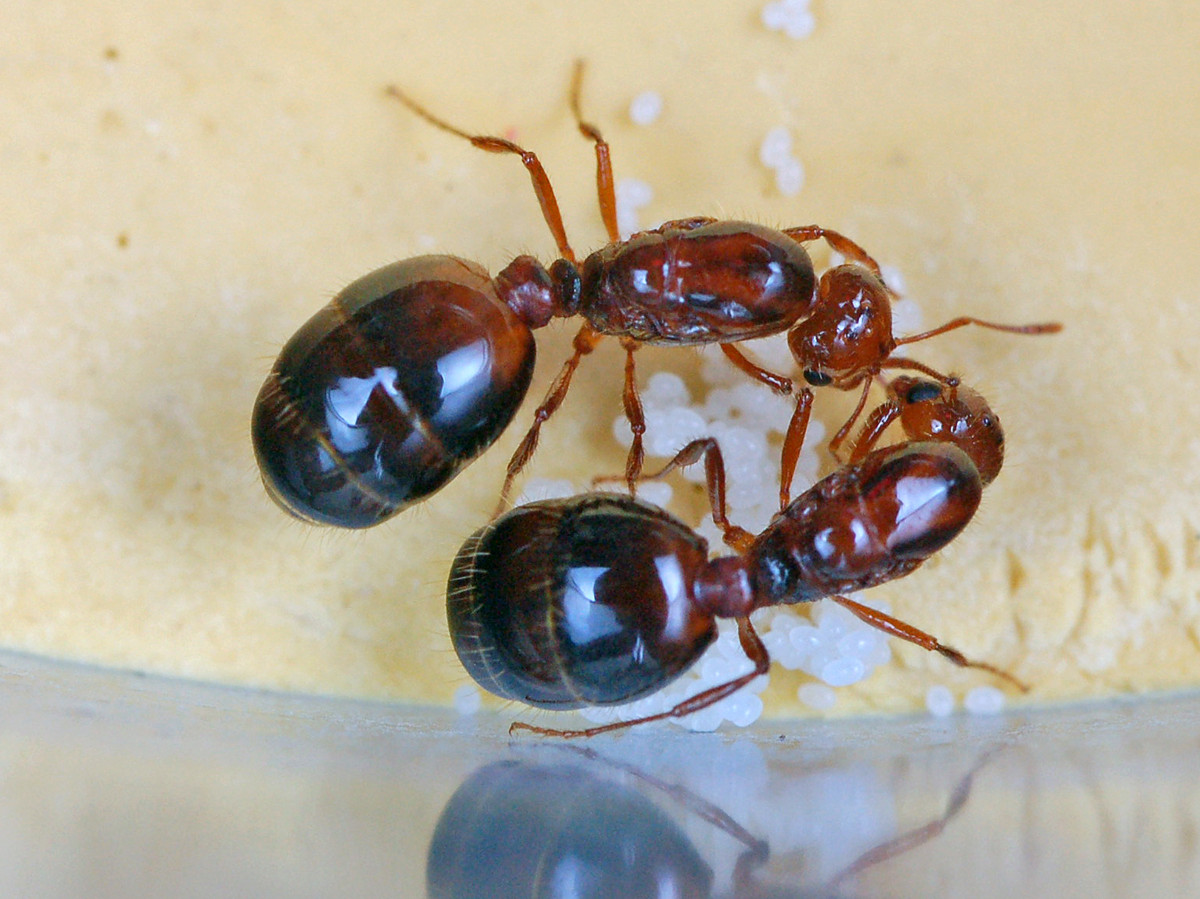 齐国君告诉记者,红火蚁传播的方式主要有自然扩散和人为传播两种。自然扩散包括有翅繁殖蚁婚飞、随洪水扩散和蚁巢搬迁。成熟蚁巢全年都会产生有翅繁殖蚁,条件合适即可婚飞,有翅雌蚁和雄蚁会在高空进行婚飞交配,受精后的蚁后降落后寻找合适的筑巢地点建立自己的“王国”,如有风力协助可扩散更远。此外,一些地区在发生洪水之后,红火蚁蚁群会形成“蚁筏”随水漂流,等洪水退后到合适的地方重新建巢,“这种方式叫水流扩散。”“还有一种方式是当受到干扰或生存环境不适宜,红火蚁也会选择迁巢或分巢,但是这种扩散范围也就是几米距离。”齐国君说。