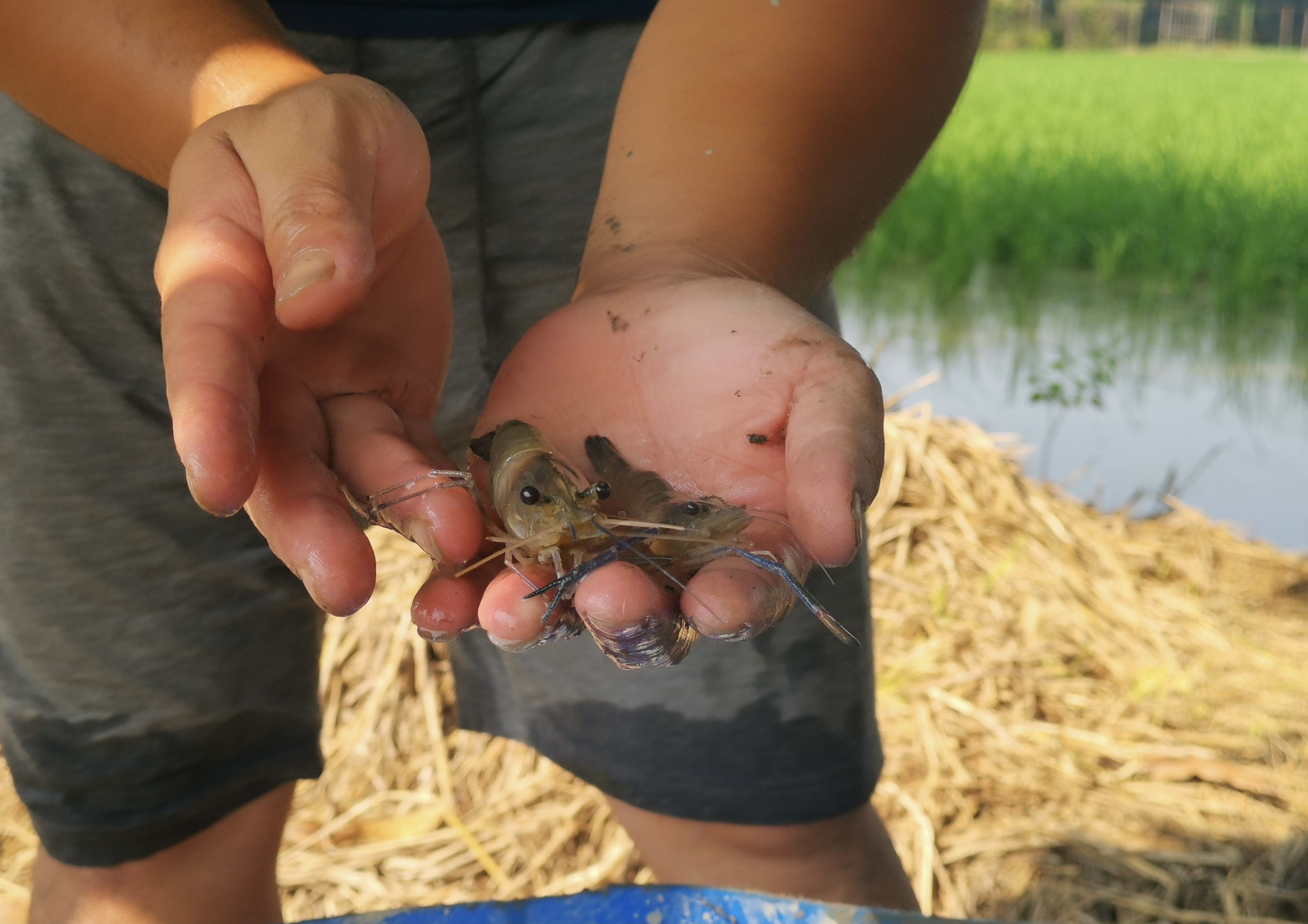 关则锋介绍,2022年8月,晚稻插秧后他投放了10000尾虾苗,才饲养了一个月,刚才捞了几只虾察看生长情况,长粗了一倍,预计12月底就可以上市。10000尾虾苗长大后按收回率80%计算,保守估计也有400斤重,售价按52元一斤计算,虾的产值可达2万多元。
