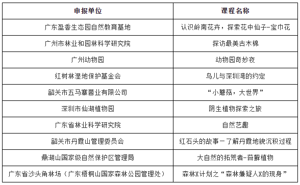 2022年广东省优秀自然教育课程
