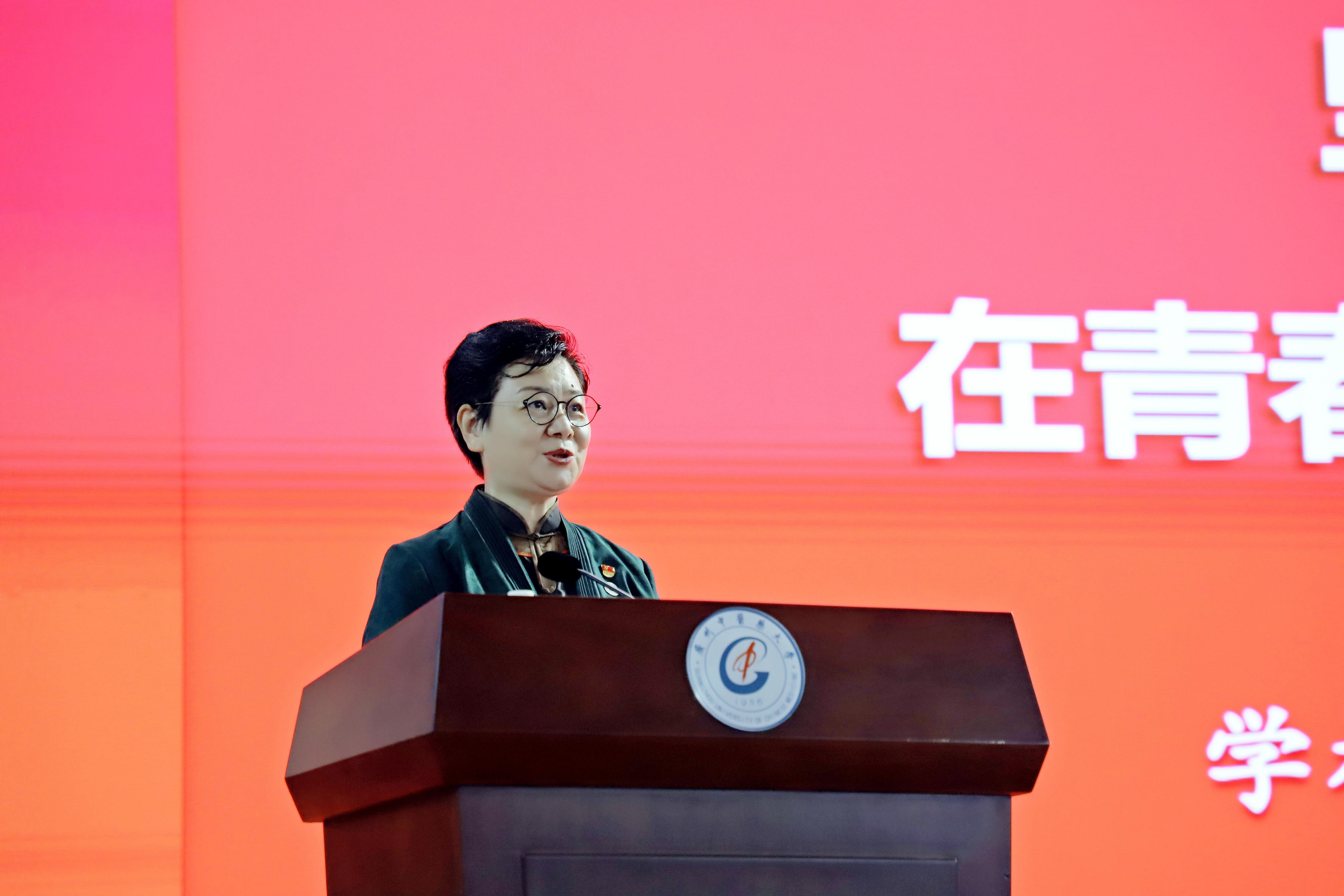 学校党委书记张建华以《坚定文化自信,在青春的赛道上奋力奔跑》为题,为新生鼓劲。她勉励同学们坚定文化自信,传承红色基因,发扬学校光荣传统,练胆魄、磨意志、长才干,在青春的赛道上奋力奔跑。