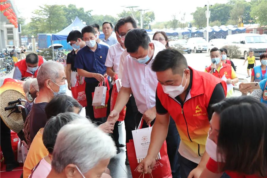 为关心关爱辖区的残障长者,帮他们排忧解难,送去温暖和关怀,9月16日下午,番禺区钟村街天汇百货党支部联合相关党建共建单位、钟村街综合养老服务中心(颐康中心)、热心企业,一起对辖区75位残障长者进行慰问,并送上米、油、面等慰问品。