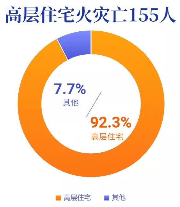 应急管理部消防救援局数据显示,近十年,我国发生高层建筑火灾3万多起。2021年,共接报高层建筑火灾4057起,造成168人死亡,死亡人数比上年增加了22.6%。而且,事故主要集中于居住场所,去年发生高层住宅火灾3438起、死亡155人,占高层建筑火灾的84.7%和92.3%。