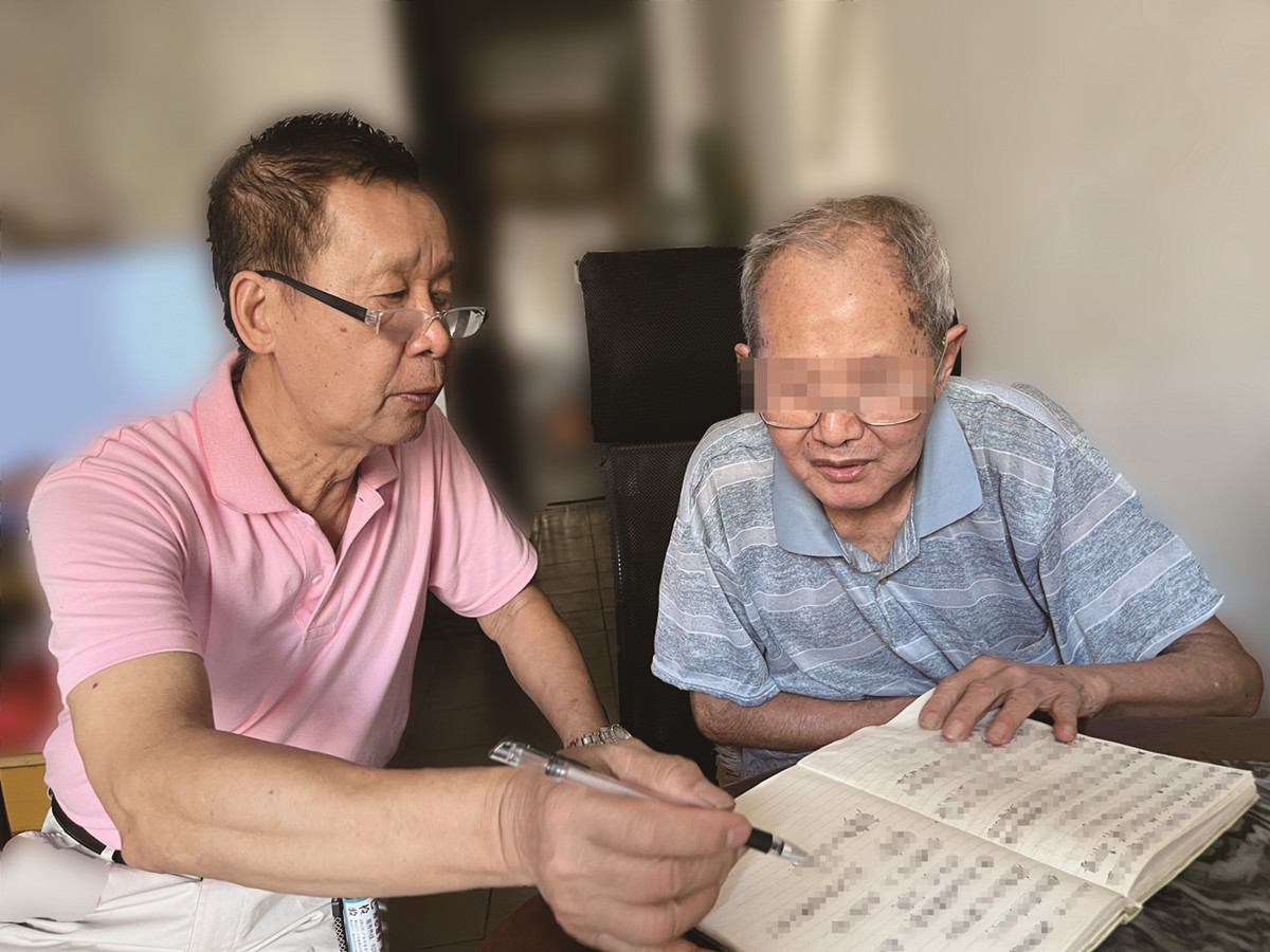 不过,要帮吴伯打开心结却不是件容易的事。最近两年,因为年事已高,吴伯双耳失聪,每次和吴伯说话,哪怕梁卫国将耳朵凑在吴伯耳朵边上,吴伯依旧听不清他讲什么,但梁卫国还是舍不得这个“忘年交”老友。“沟通再难,我也要上门。相处几年下来,也有感情了。”梁卫国说。最近两年,梁卫国和吴伯的沟通都是通过纸笔书写来实现。吴伯把要说的话写在纸上,吴伯看到他的话之后,再用笔写在纸上做出回应。每次上门探访吴伯的前一晚,梁卫国都要做大量准备工作,为了分享自己工作和生活中的点滴,他通常要手写几大张纸,把想要说给吴伯说的话都写在纸上。因为纸笔沟通效率低,每次上门探访一次吴伯,梁卫国都要花3个小时以上。“每次上门和吴伯聊天一次,我的手都写酸了。”梁卫国笑着说。