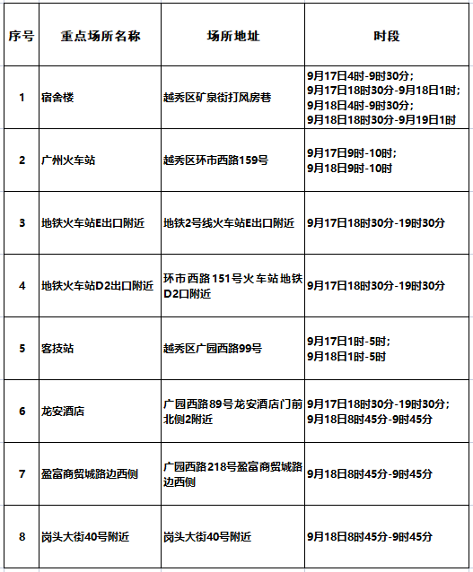 越秀区重点场所一览表