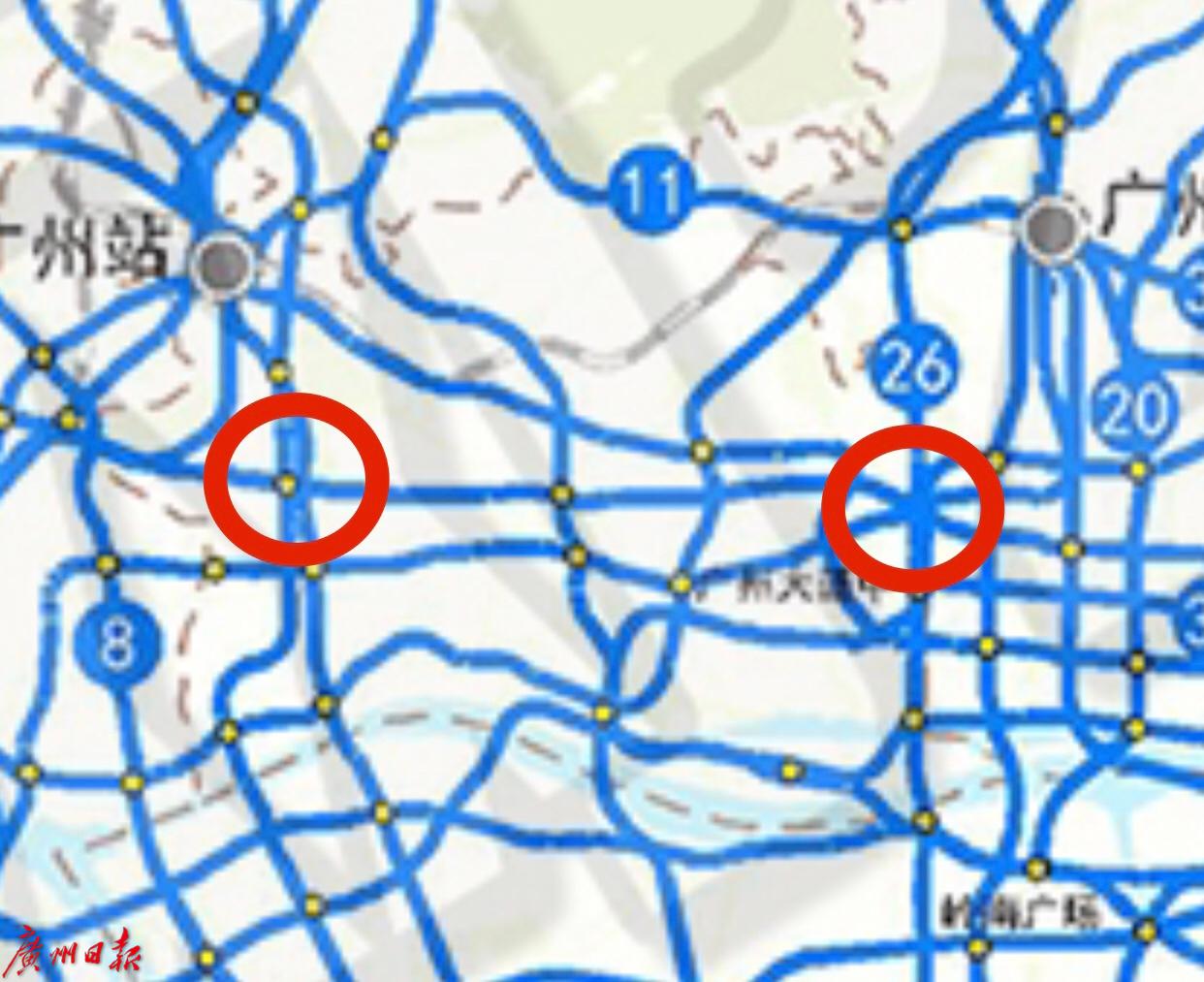 左边红圈为纪念堂站,右边红圈为建议增加的中山一立交站