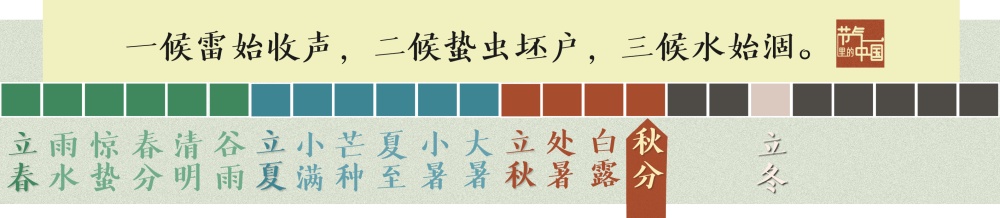 每年的公历9月22日至24日,当太阳到达黄经180度,我们迎来二十四节气中第十六个节气,也是秋季第四个节气——秋分。秋分日后,太阳直射位置南移,北半球昼短夜长,昼夜温差加大,气温逐日下降,从此一步步走向深秋。