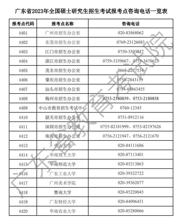 9月24日,广东省2023年全国硕士研究生招生考试预报名即将开始。9月23日,广东省教育考试院对外公布了各个报考点的咨询电话,方便考生报考。
