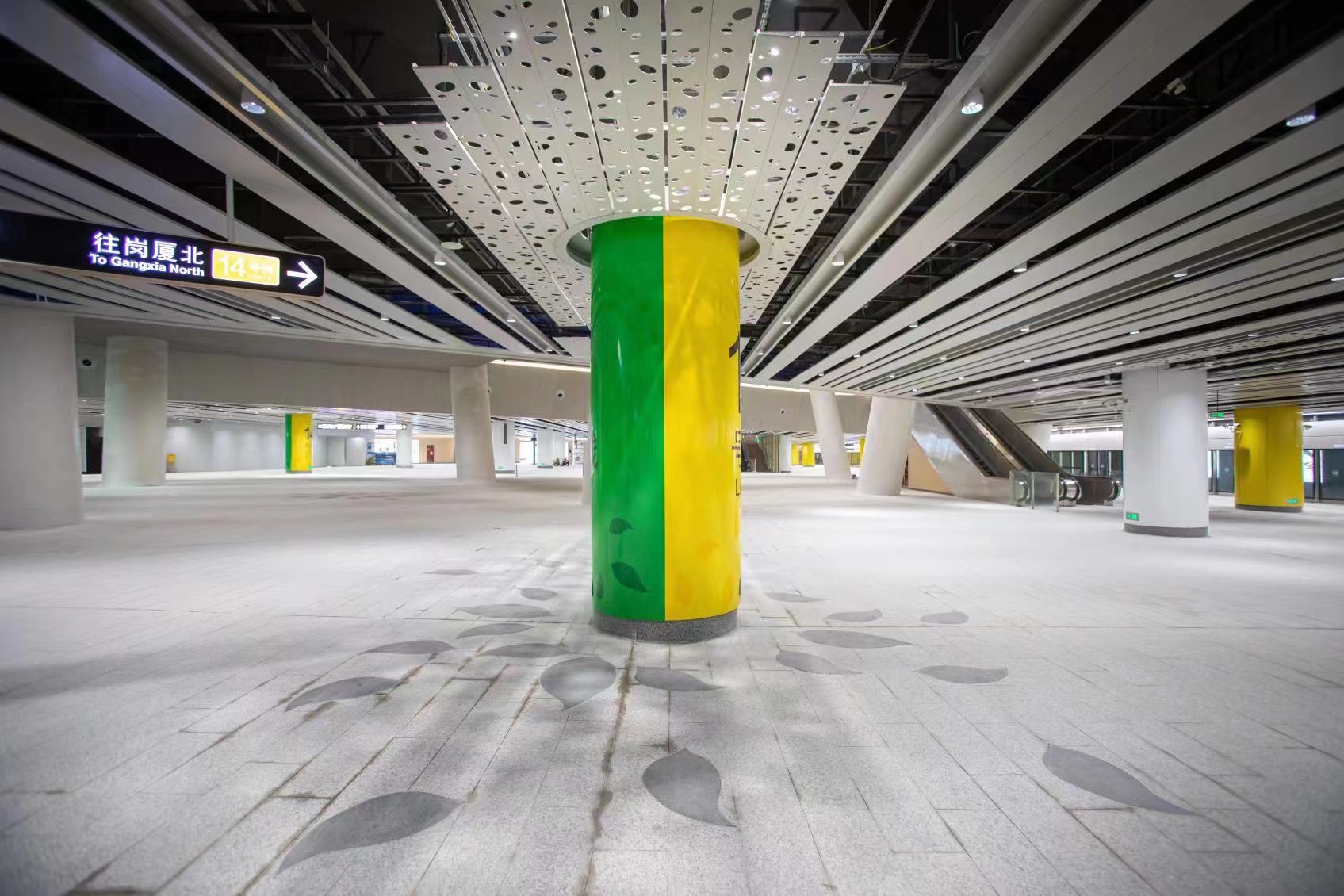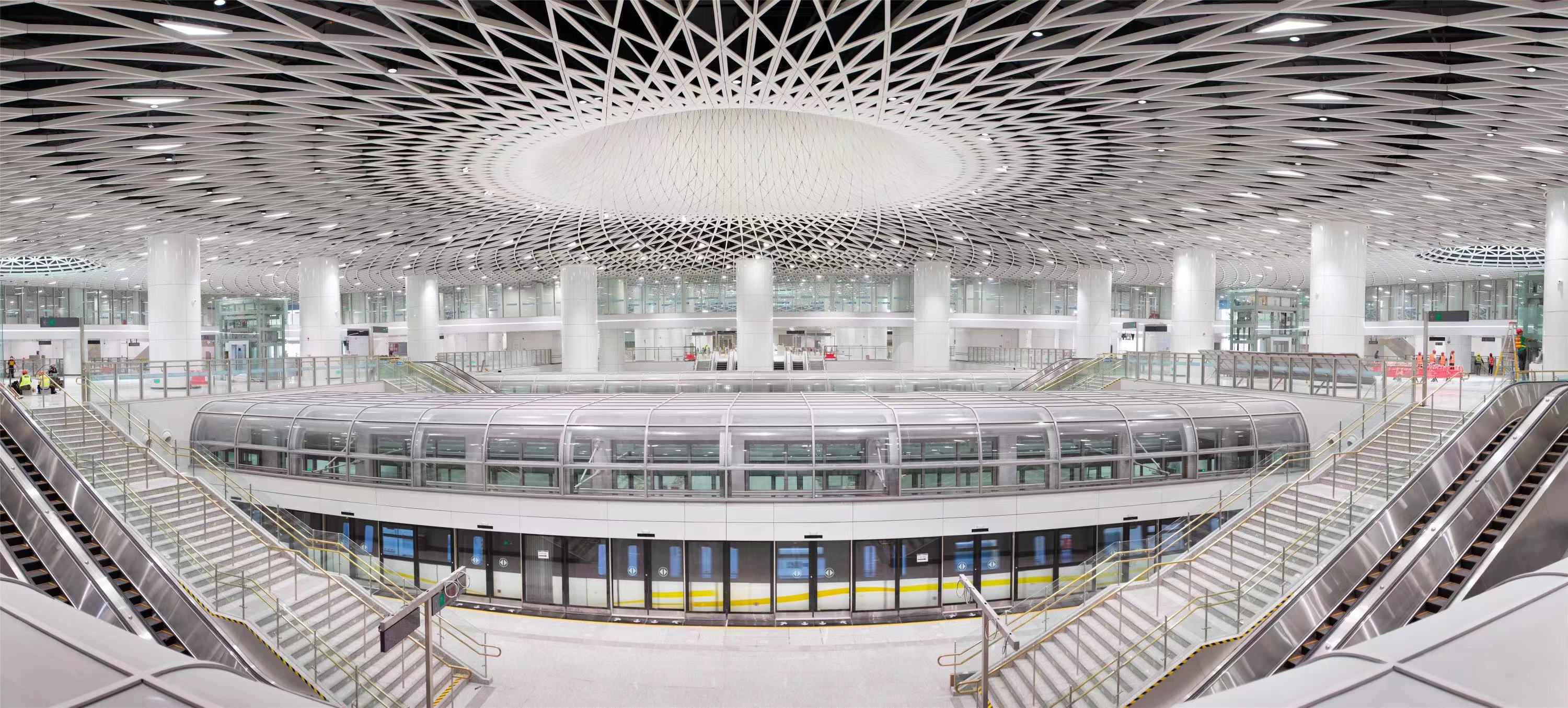 据悉,岗厦北枢纽是深圳市首个一次建成的四线交汇站点,今年开通运营后将实现与2号线、10号线、11号线、14号线的站内换乘,同时未来还可与1号线岗厦站的地下商业空间直接联通,将成为深圳首个地铁快线成网的综合交通枢纽。而作为深圳综合交通枢纽的“颜值”担当,岗厦北枢纽的“内景”也一直备受关注。