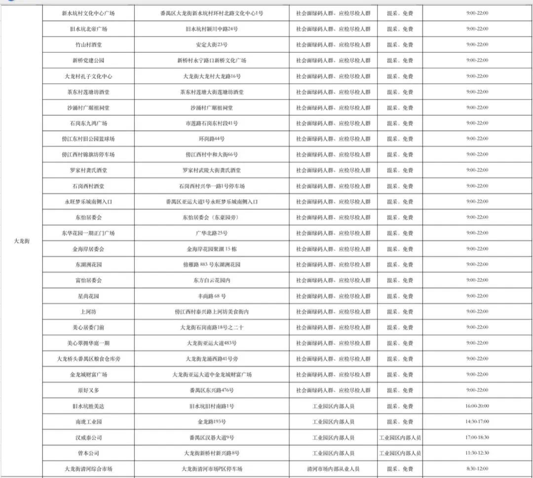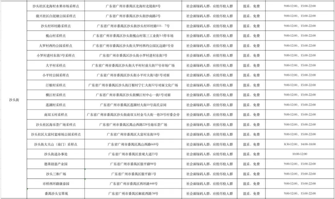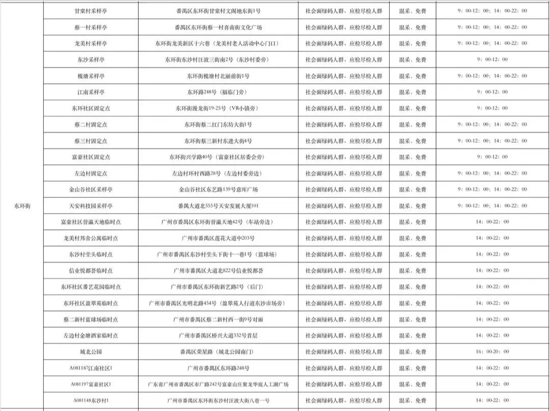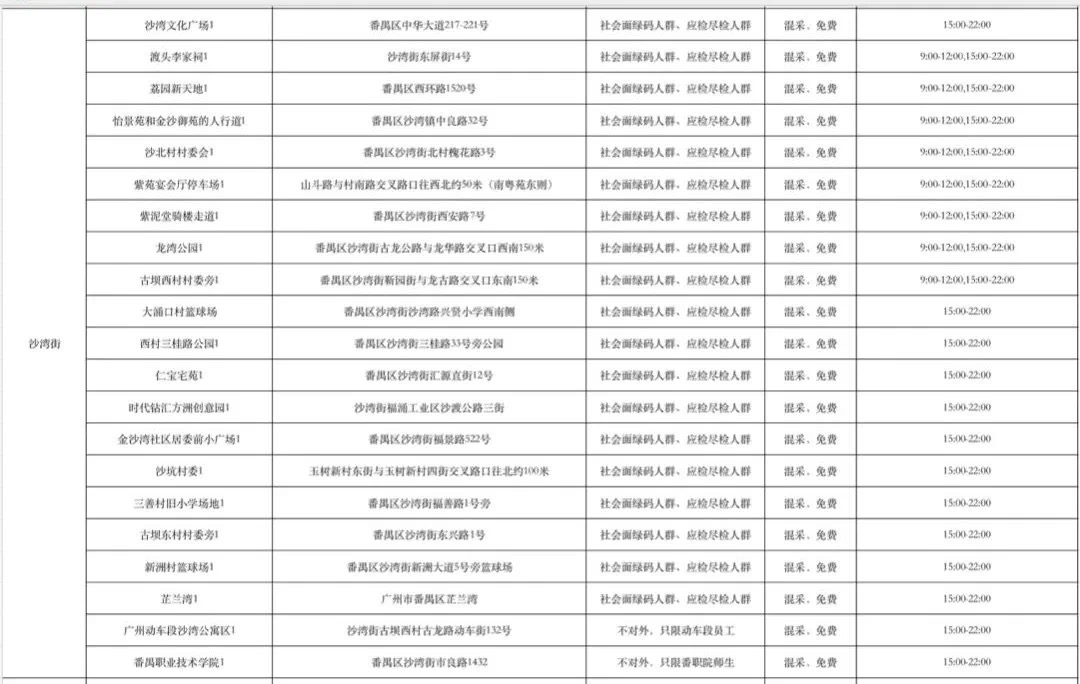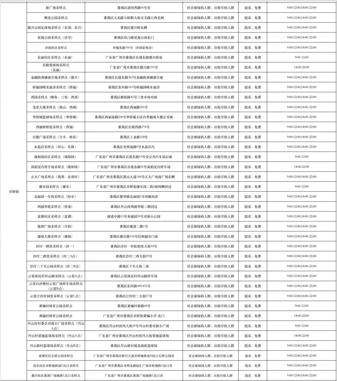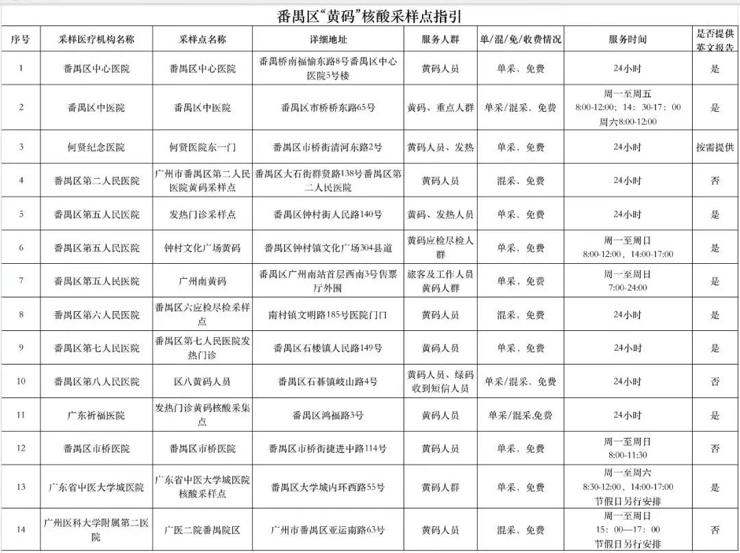 广州市番禺区9月23日全员核酸检测点、黄码人群核酸检测点→