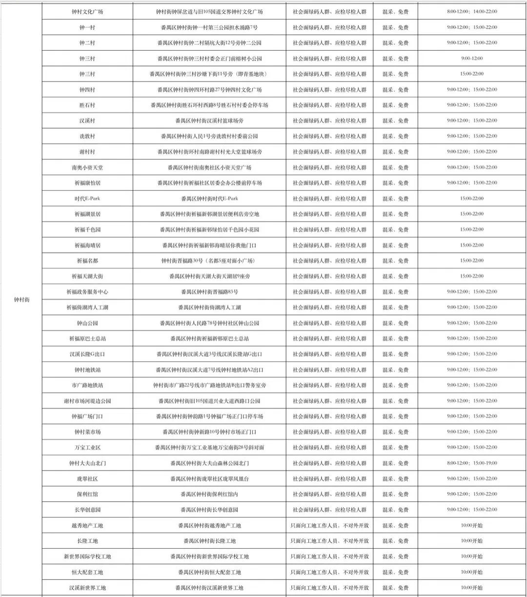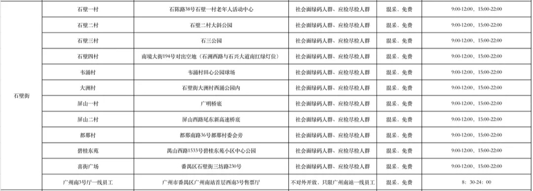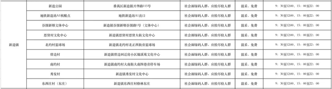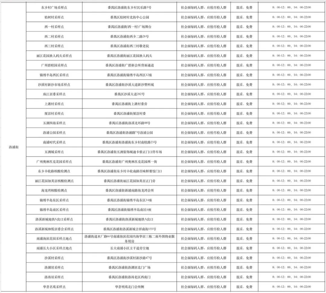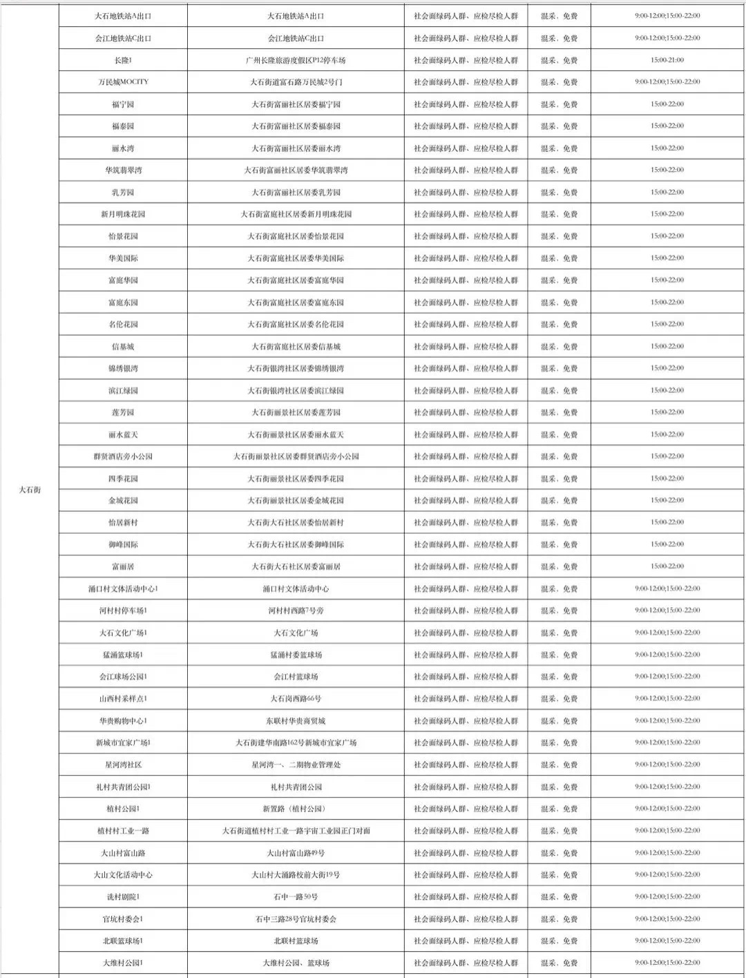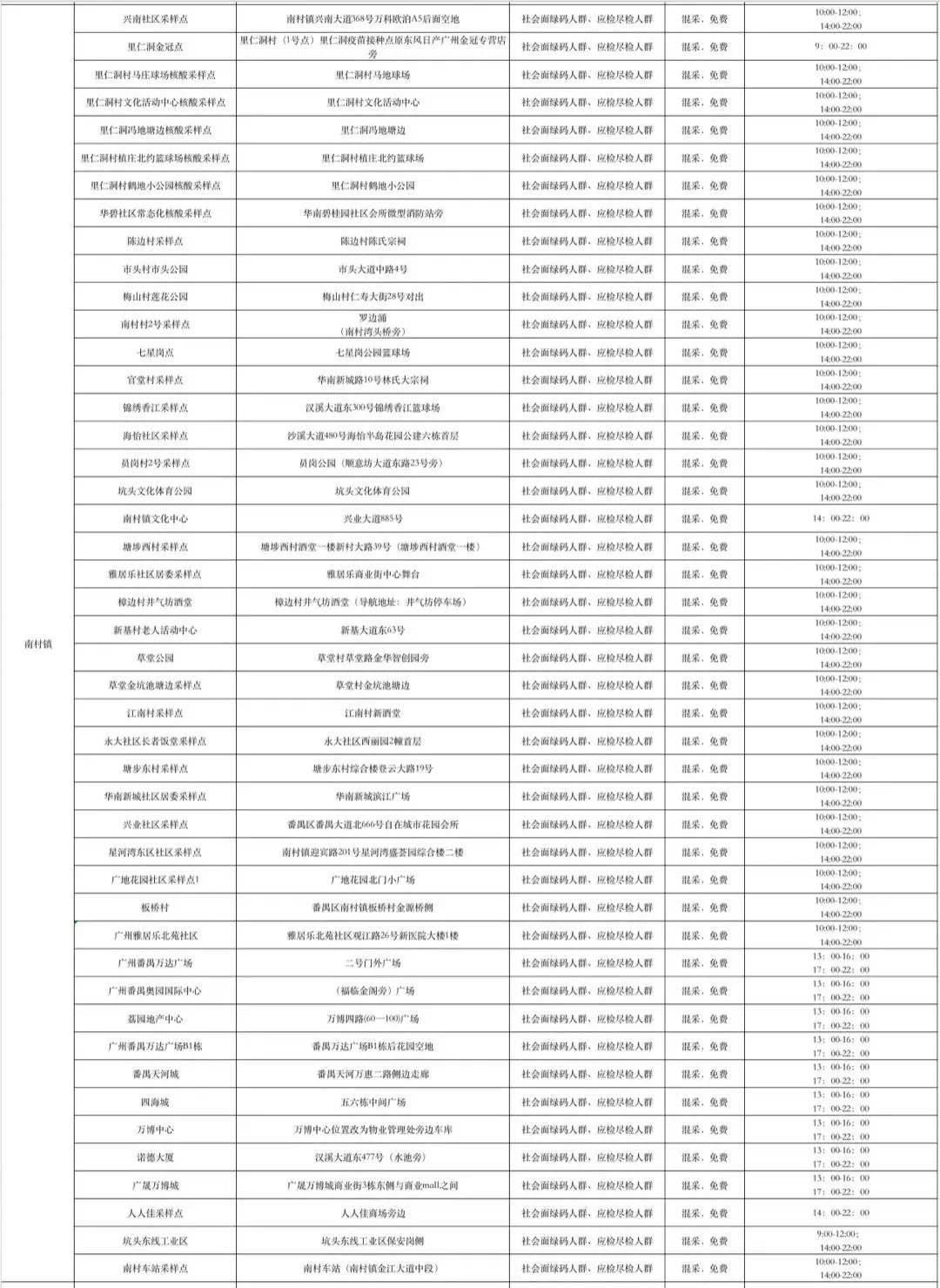 广州市番禺区9月23日全员核酸检测点、黄码人群核酸检测点→