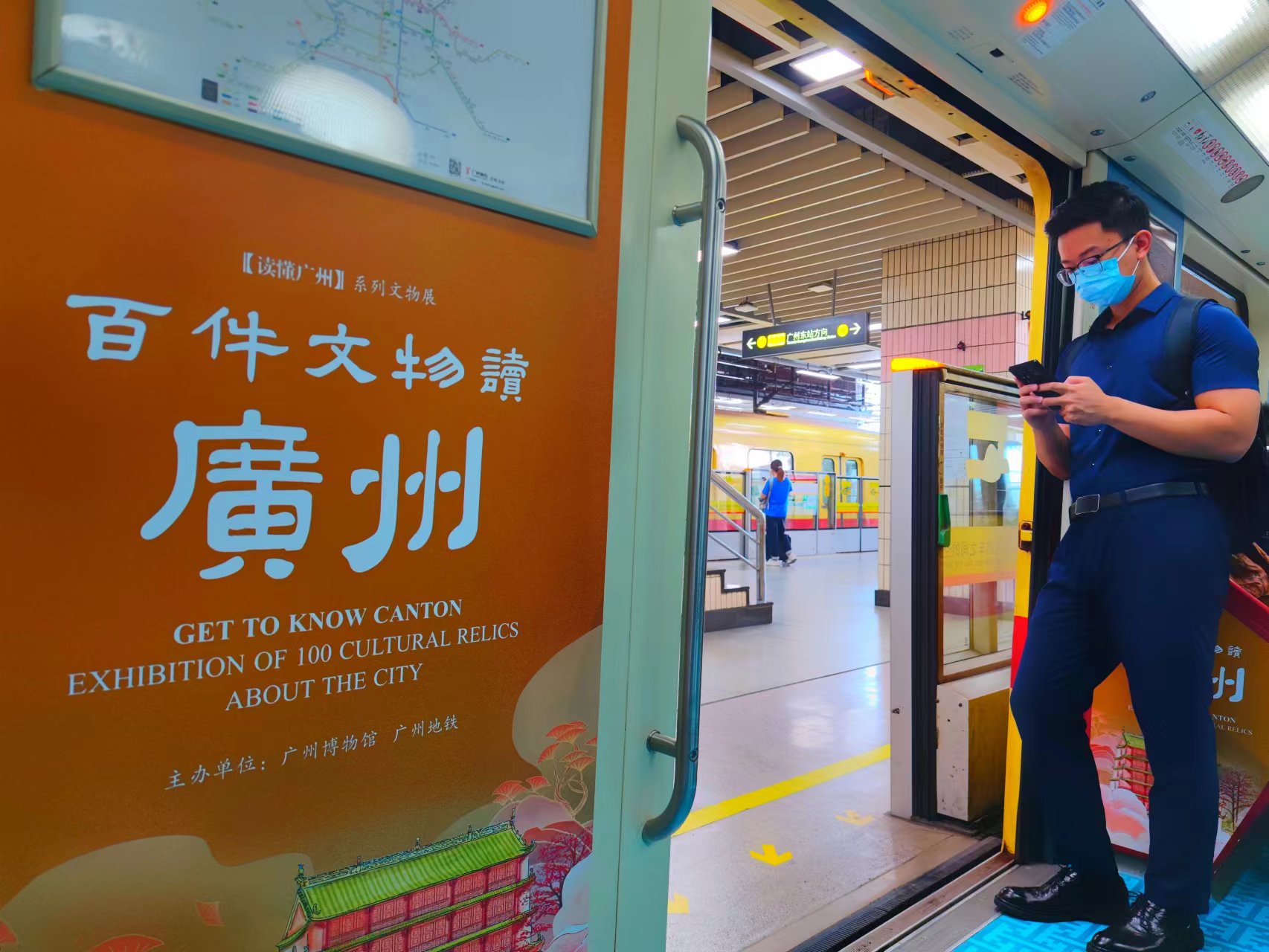 “读懂广州”地铁专列自9月26日至10月23日在线运营。它是继2019年“匠心神巧——广作特展”、2020年“漫游镇海楼 细数粤童谣——广州博物馆粤语童谣文化展”以及2021年“从黄浦潮到珠江潮——庆祝中国共产党成立100周年特展”三进白云国际机场海天文化走廊、2020年“指间的广州制造——‘广府旧事’通草画文化展”走进地铁文化长廊、2021年“画中话广府——广州博物馆藏外销通草画中的城市生活展”走进海珠万达广场之后,广州博物馆又一次通过优势互补的跨界合作,让文物走出库房、走出展柜,来到市民身边。