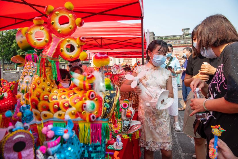 在现场,主会场还设置了禺山腊味、本地特色蔬果,沙湾姜埋奶、爬金山、古法鱼饼等番禺农特产品、乡村美食、非遗项目展示摊位,吸引了众多市民纷纷驻足观看。市民游客在摊位前一边品尝美食,一边看砖雕、传统手工鱼灯制作等番禺非遗项目展示。
