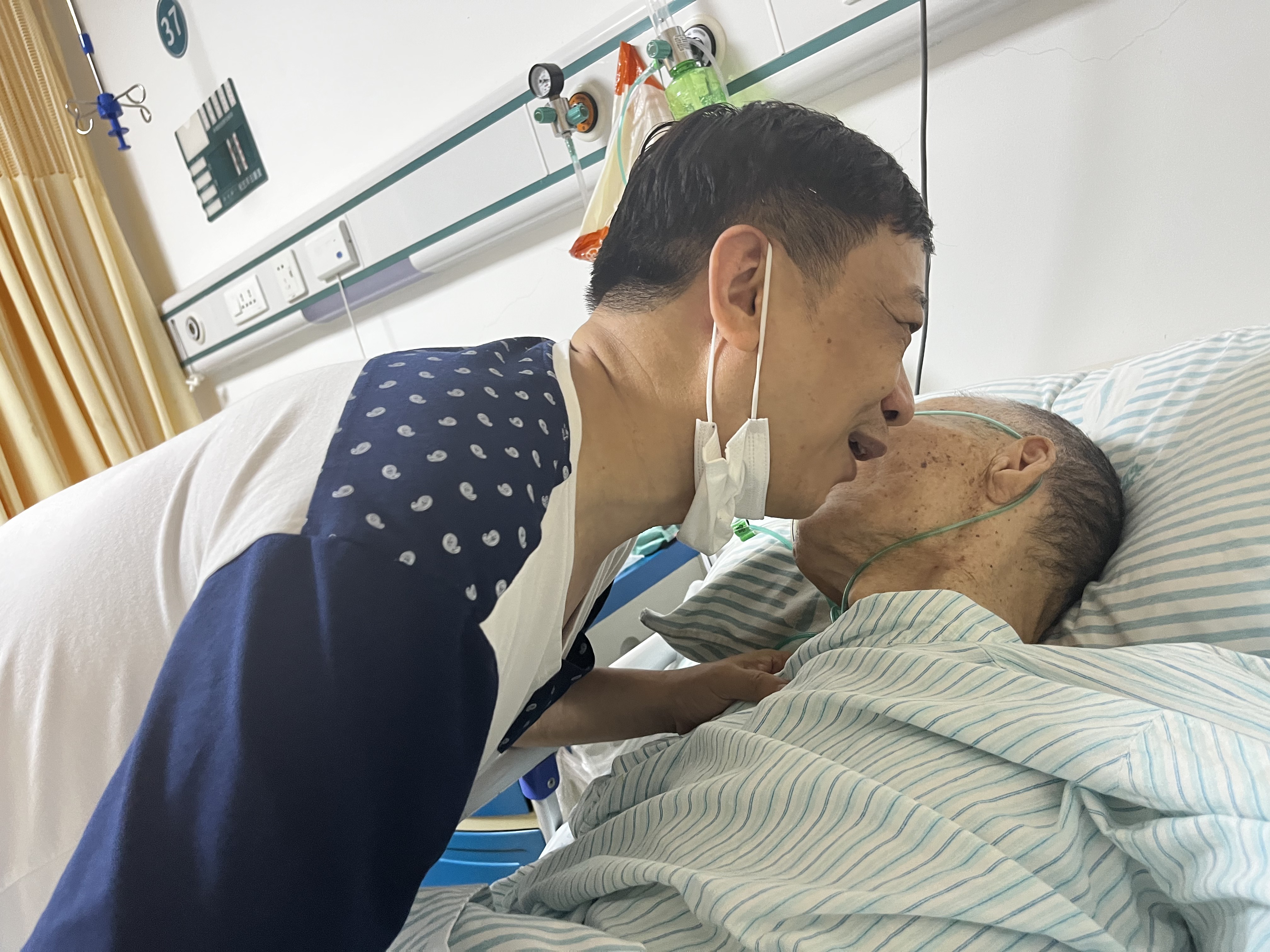 9月23日中午,正在医院病房里帮父亲做辅食的刘沛强突然听到父亲床前传来一声微弱的“阿强”。他吓了一跳,回过头一看,竟然是昏迷已久的父亲醒来了在喊他。刘沛强赶忙走上前握着父亲的双手说:“老窦,你在喊我的名字吗?”“你是阿强”父亲嘴里又冒出了四个字,刘沛强不禁喜极而泣。