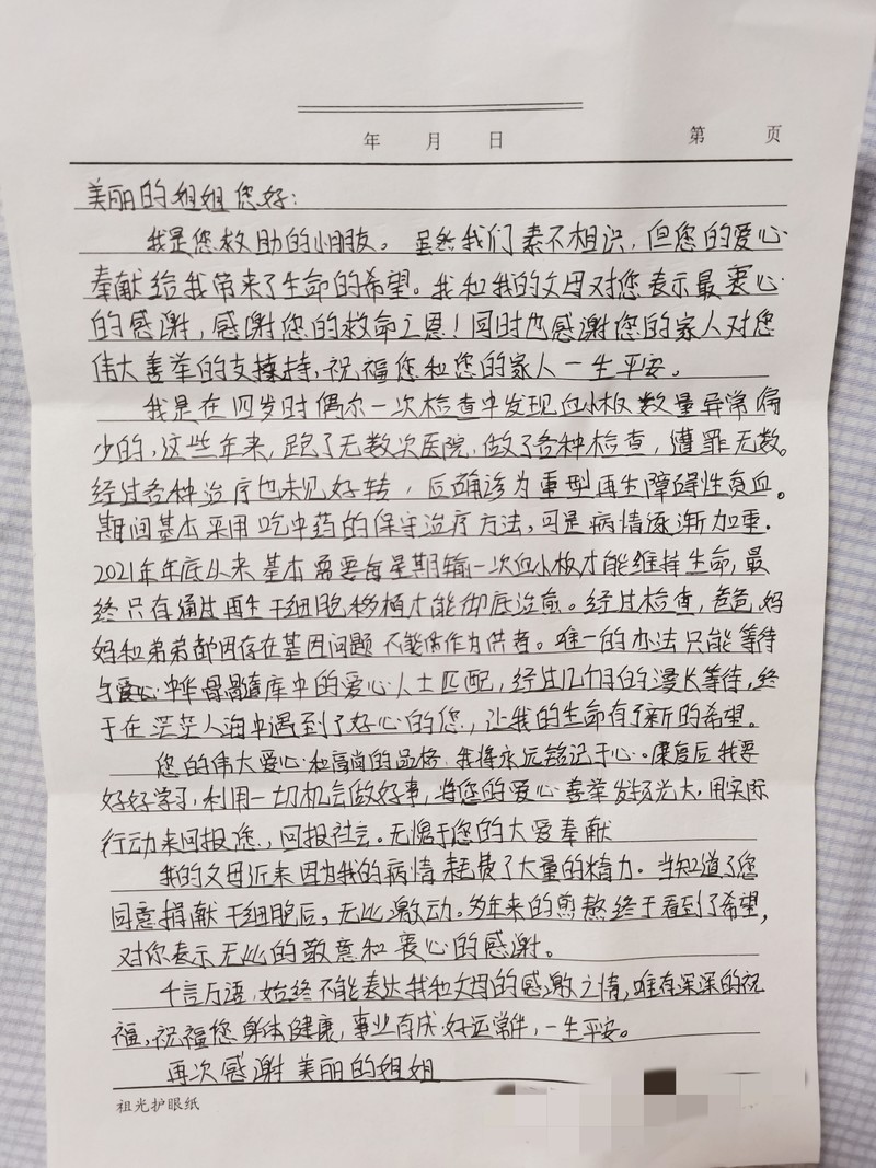 “我希望女儿的付出能够给另外一个家庭带来重生,有个圆满的结果,希望那个等待移植的小朋友能够移植成功,能够通过茜粞造血干细胞康复起来。”刘茜粞的母亲这样说。