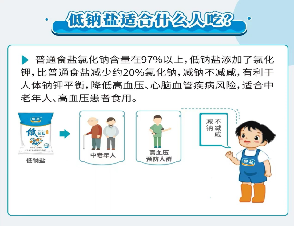 食盐,作为不可或缺的调味品,该如何选购健康放心食盐?广东省盐业协会建议,市民要到正规渠道选购食盐,选择具有食盐电子追溯功能的食盐。同时,要科学补碘,食用加碘食盐是预防碘缺乏病最简便、安全、有效的方式,因治疗疾病需要的可遵医嘱选购未加碘食盐。要合理减盐,低钠盐具有“减钠不减咸,低钠更健康”的特点,建议健康人群食用低钠盐。此外,要正确认识食盐抗结剂亚铁氰化钾,也可基于个人消费偏好选购未添加抗结剂的食盐。