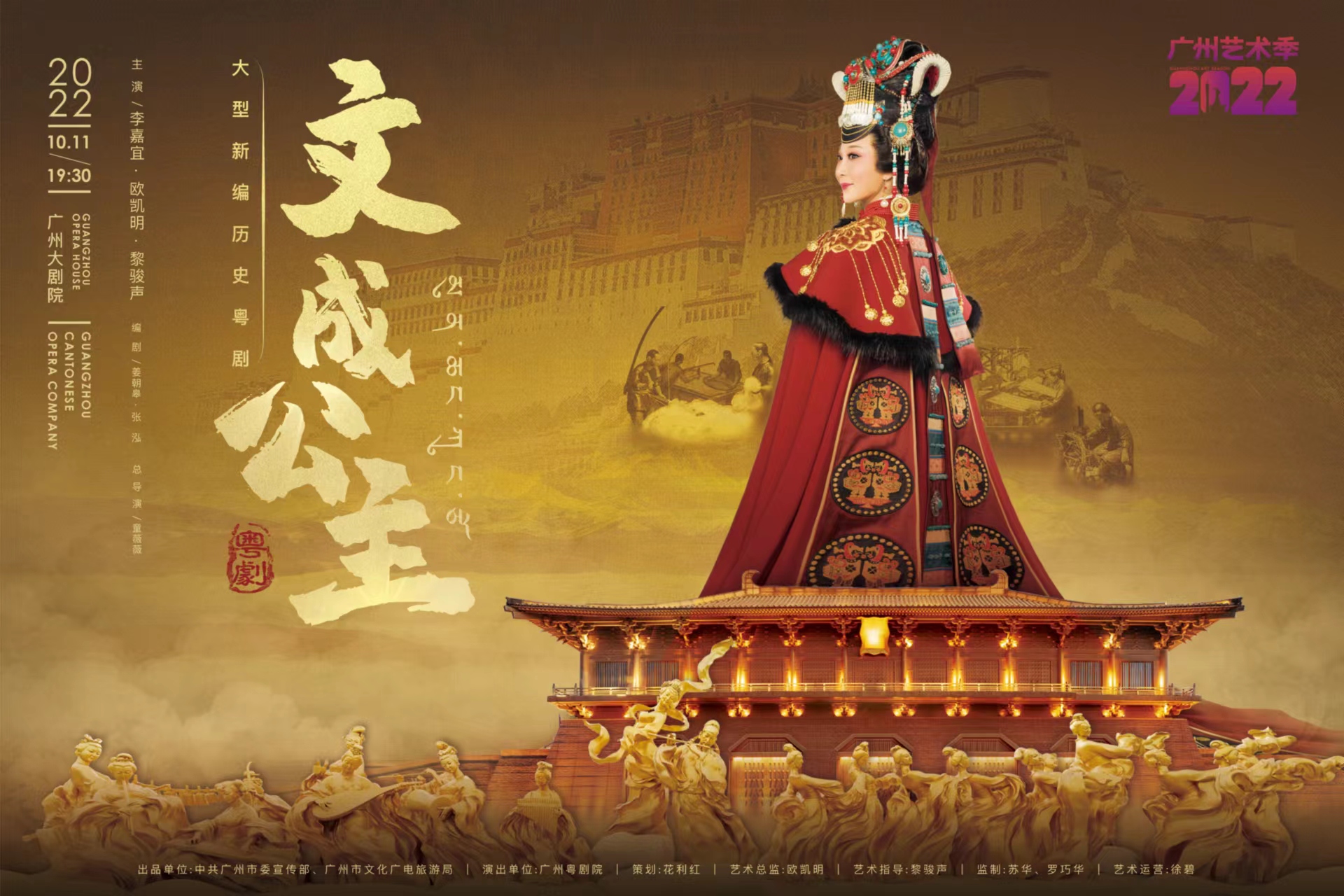 10月11日晚,大型新编历史粤剧《文成公主》将登录广州艺术季2022,在广州大剧院盛大公演。该剧由中共广州市委宣传部、广州市文化广电旅游局联合出品,广州粤剧院创排演出。