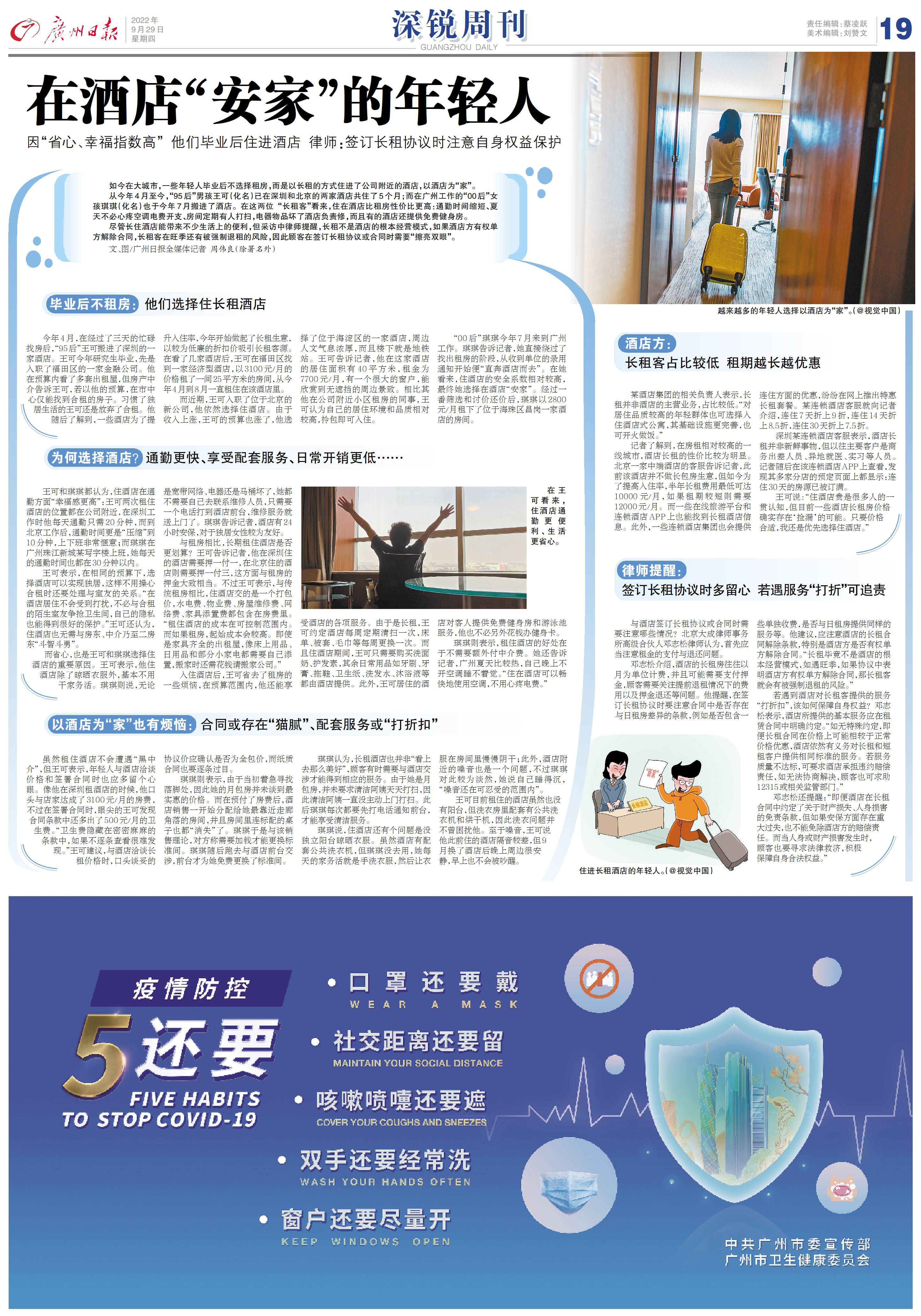 琪琪则表示,租住酒店的好处在于不需要额外付中介费。她还告诉记者,广州夏天比较热,自己晚上不开空调睡不着觉。“住在酒店可以畅快地使用空调,不用心疼电费。”