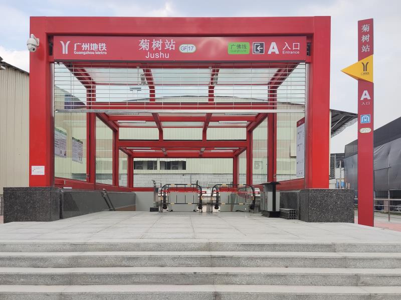据介绍,前期受征地等因素影响,菊树站A、B口无法在车站开通时同步建成使用,近年来广州地铁集合多方力量,在市、区各级政府部门的大力支持下,各项施工前置问题得以解决。为保证能在国庆节前开通,广州地铁分秒必争完成了出入口装饰装修、电气照明、扶梯安装、火灾报警系统、给排水和设备监控等实体工程的施工任务,并对出入口扶梯、楼梯台阶、电气照明、墙面天花等软硬件设备进行检验和测试,确保各项设备设施、环境空间符合开通运营标准,进一步提升运营服务质量和乘客出行满意度。