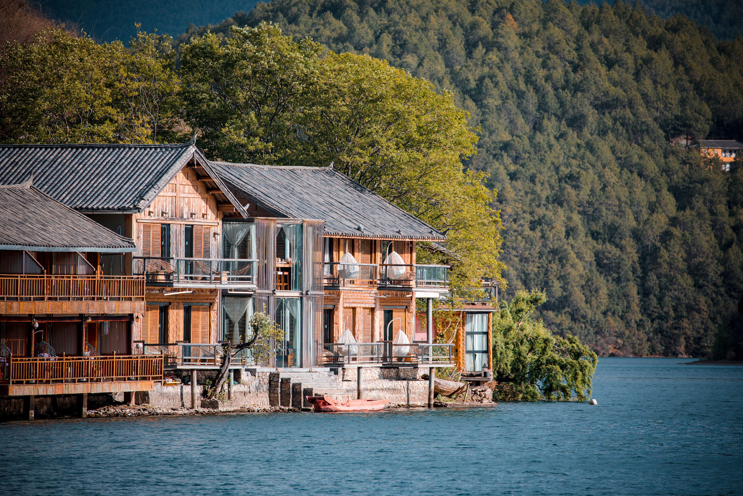 这一次,泸沽湖给我最大的惊喜是多了许多漂亮的民宿。此行我选了四个在泸沽湖很出名的民宿入住,既有在云南的,也有在四川的。让我没想到的是,第一个民宿就让人非常满意,连续住了五天。这些民宿都很有设计感,尤其是临湖的巨大落地窗,让人从日出到日暮都可随时欣赏到泸沽湖不同角度的美。