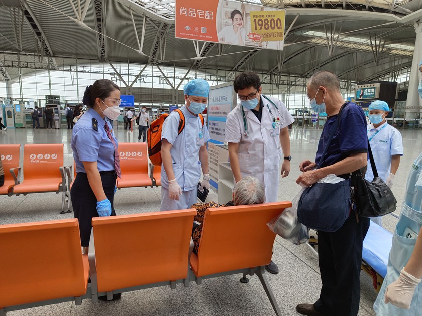 9月28日14时左右,广州南站客运值班员周梦珂在候车室巡视时发现,A22检票口附近有一位老奶奶捂住胸口,脸色苍白地半躺在座椅上。一旁的老爷爷满脸焦急,似乎在寻求帮助。周梦珂立即上前询问情况,得知老人家有心脏病史,现突发胸闷,呼吸困难。周梦珂立即通知安全生产指挥中心广播寻找医生,并询问老人家是否有常备药品在身上,赶紧倒来温水让老人家服药。