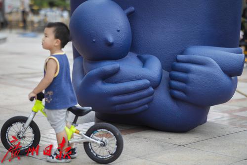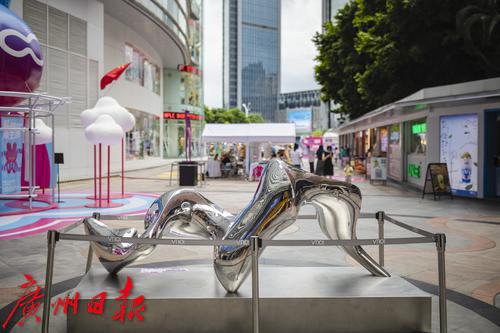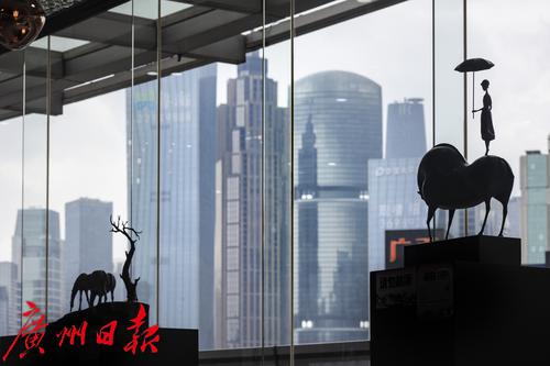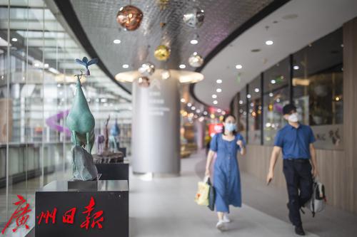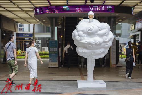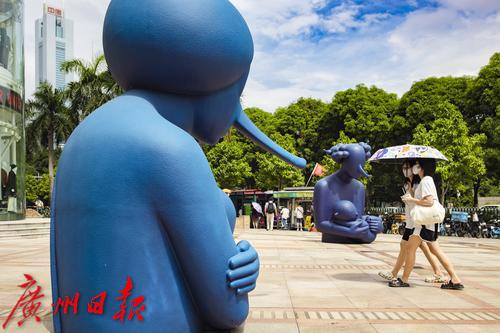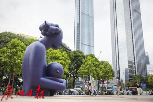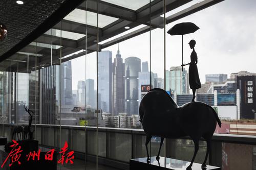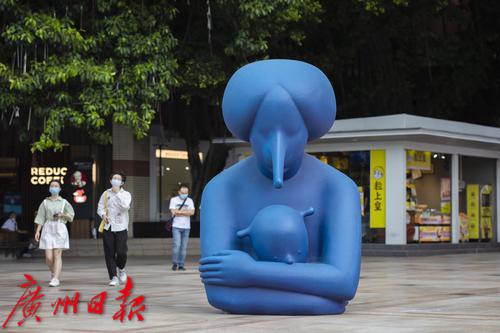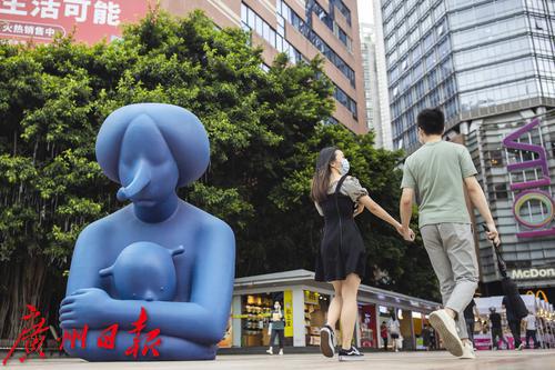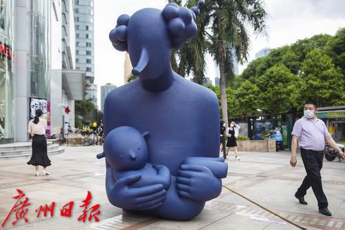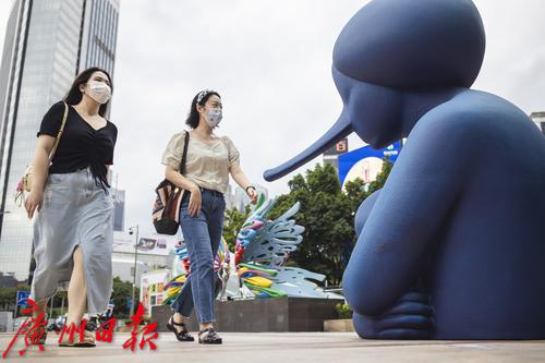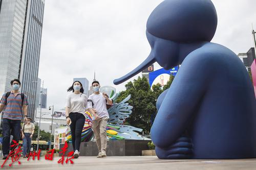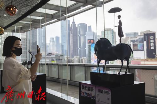9月30日,天河区维多利广场前,展览上的雕塑与城市景观融为一体。