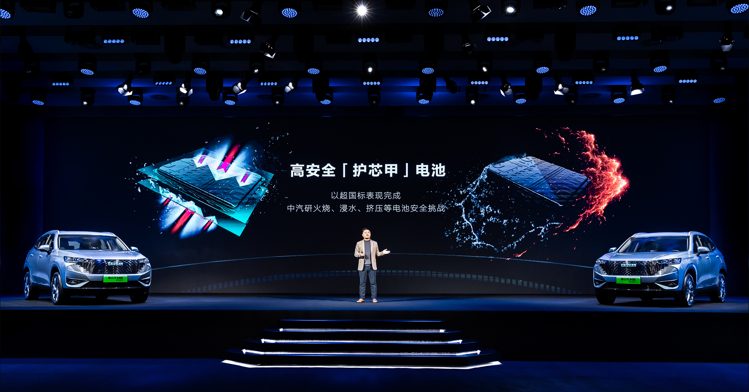 在三电系统方面,长城是较早在电池领域完成布局的企业之一,旗下“蜂巢能源”已经形成了涵盖电池材料、电芯、模组研发和制造等全面的新能源产研能力。在电池安全上,哈弗 H6 DHT-PHEV“护芯甲”动力电池组配备了超高强度钢制箱体,整体式高强度安全框架,将电芯置于最中心,能有效抵抗外部冲击且防水防渗。在中汽研电池安全极限挑战中,以超国标表现完成了挤压、火烧和浸水三大挑战。