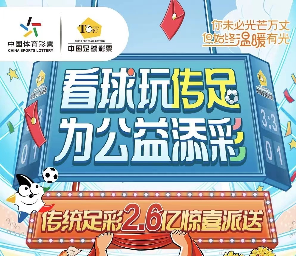 足彩不仅是球迷撬动快乐的杠杆,也是一份爱心的传递,每购买1注2元传统足彩,就有0.44元成为彩票公益金,广泛用于全民健身、奥运争光计划、社会保障基金、教育助学、法律援助、防疫救灾和乡村振兴等公益事业。传统足彩用派奖感恩善意,用惊喜回馈爱心,广大购彩者在为公益作出贡献的同时,也有机会收获属于自己的幸运和梦想。