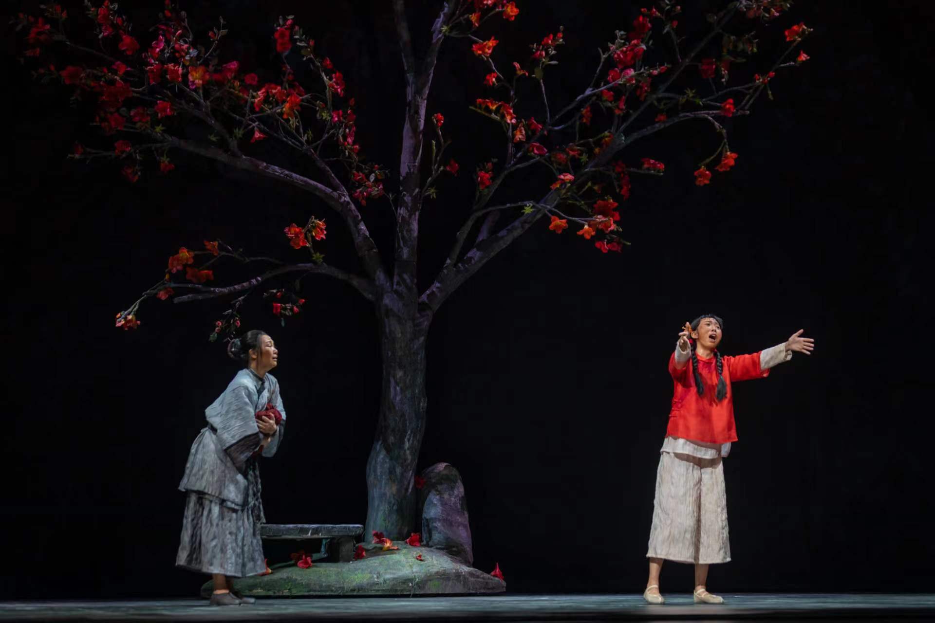 《侨批》剧情波澜起伏,细腻动人。舞台上,檀香山码头一组组华工艰难劳作的画面,望乡曲唱出侨胞对家乡、对亲人的无限眷念;平静广阔的海面传来高胡、三弦、笛箫、琵琶奏出的歌谣,广东特有的音调唤醒对“乡音”的思念与情愫;侨批局里算盘声噼里啪啦,唐有信刚劲浓烈的独唱,与唐夫人的对唱,唱出有信有义的同胞之爱;沿海渔村泥坯房里,开满木棉花的林间小道上,五彩斑斓的梦境中,梁董氏与丈夫、婆婆、女儿深情重唱,唱出了面对苦难不屈的生命力与顽强的抗争精神。