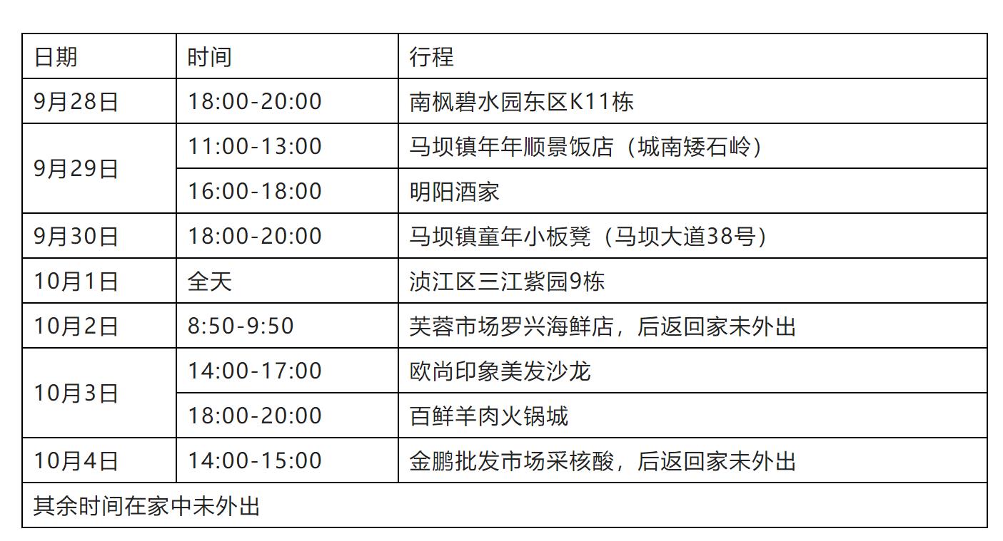 本土确诊病例1:谭某某,女,47岁,居住浈江区三江紫园,目前已转运至定点医院隔离治疗。轨迹如下: