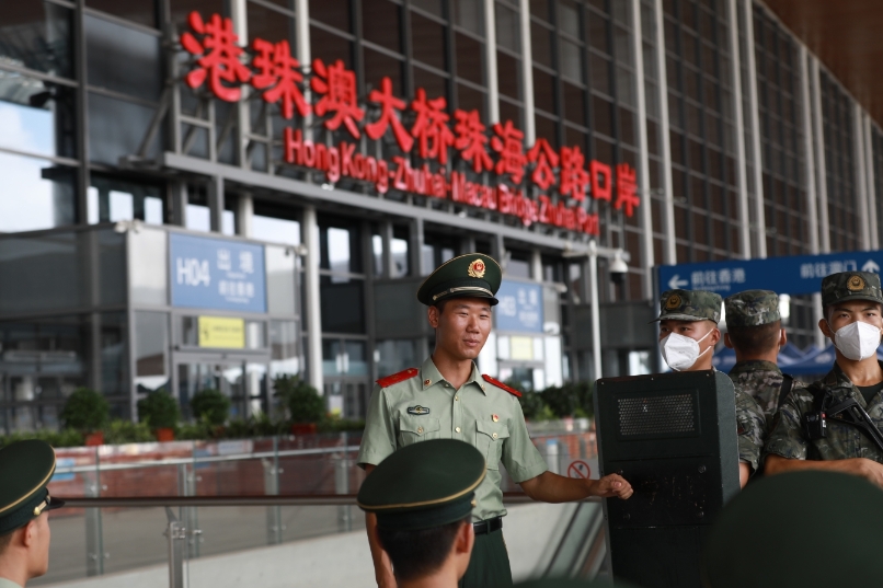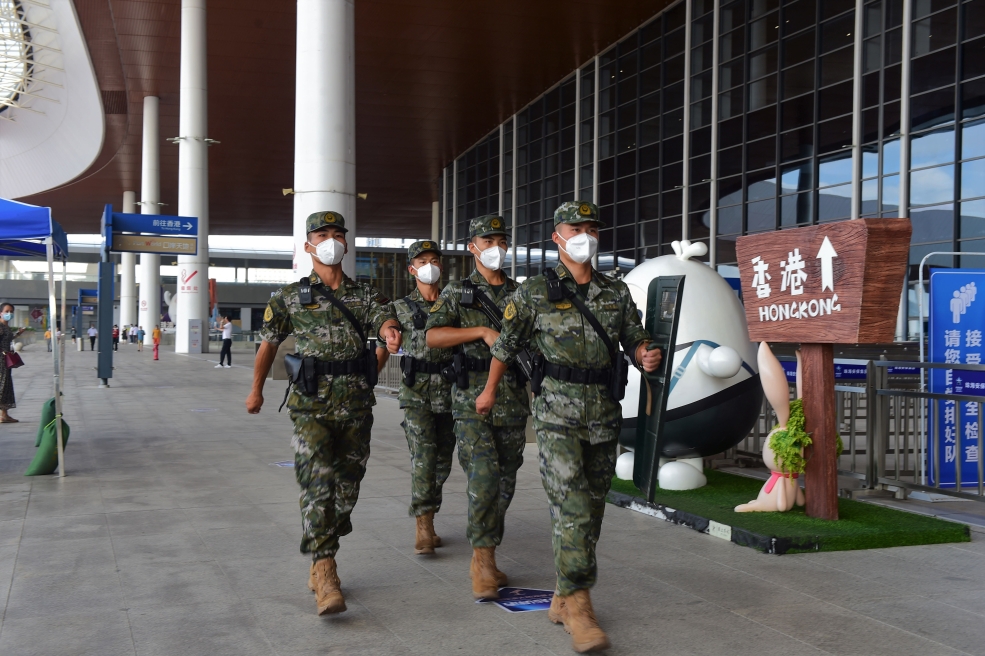 近日,武警广东总队某支队“红色前哨连”10余名官兵整齐列队,前往港珠澳大桥珠海公路口岸某执勤区域开展“喜迎二十大 永远跟党走”主题党团日活动。