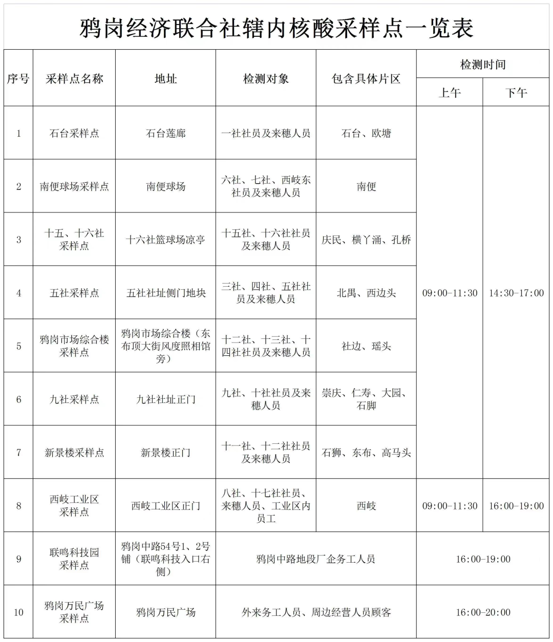 时间:上午9:00起(医务人员到位开采,如出现雷暴雨等极端天气,检测工作也许会短时暂停,具体以各采样点现场工作人员安排为准)