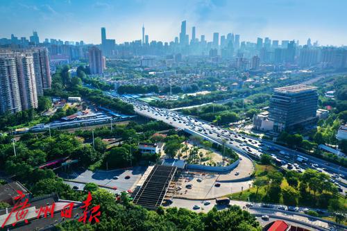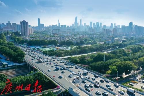 2022年10月6日下午,广州华南快速春岗立交路段进城方向车流密集。