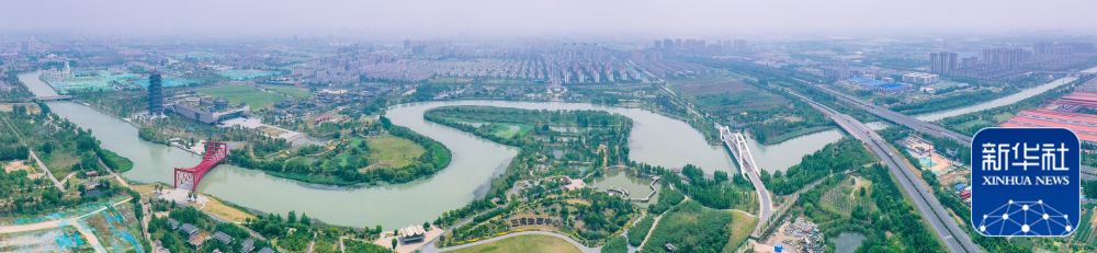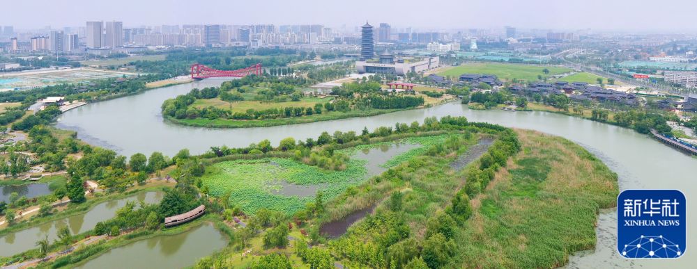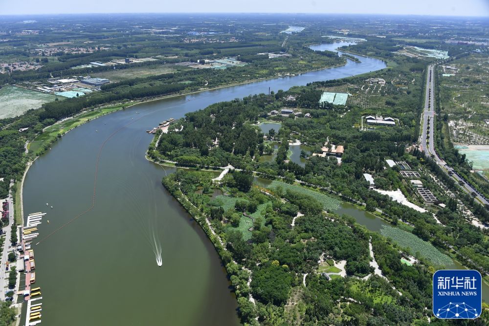 ↑这是位于北京市通州区的大运河森林公园(2020年6月14日摄,无人机照片)。