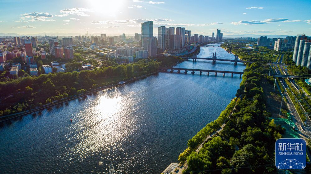 ↑这是在北京市通州区拍摄的横跨大运河的玉带河桥(2022年8月15日摄,无人机照片)。