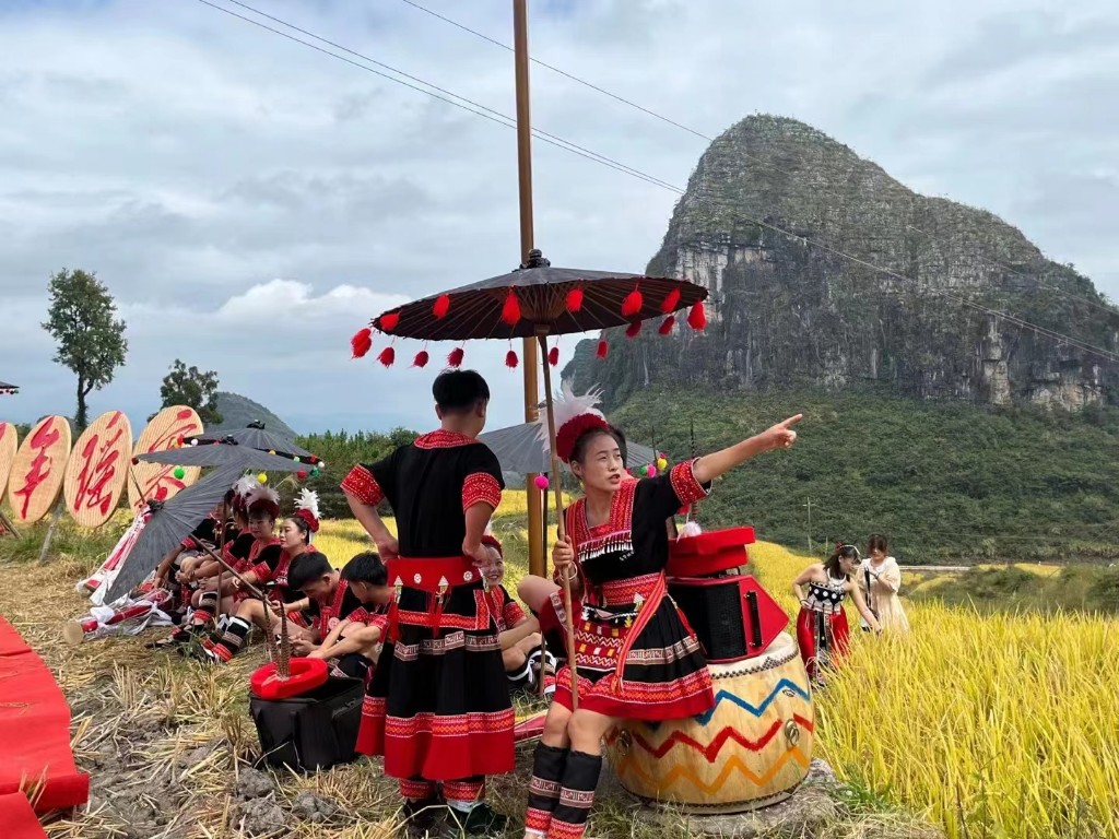 据了解,丰收音乐节期间,广东连南瑶族群众通过“长鼓舞”、“欧莎腰”、千人长桌宴、红歌快闪、梯田景观展演以及欢庆丰收的篝火盛会等表演形式,打造出融“音乐+非遗+农旅”结合的 “田园牧歌”风情,用音乐活化瑶族千年梯田,拓展农文旅研学,助力乡村振兴。