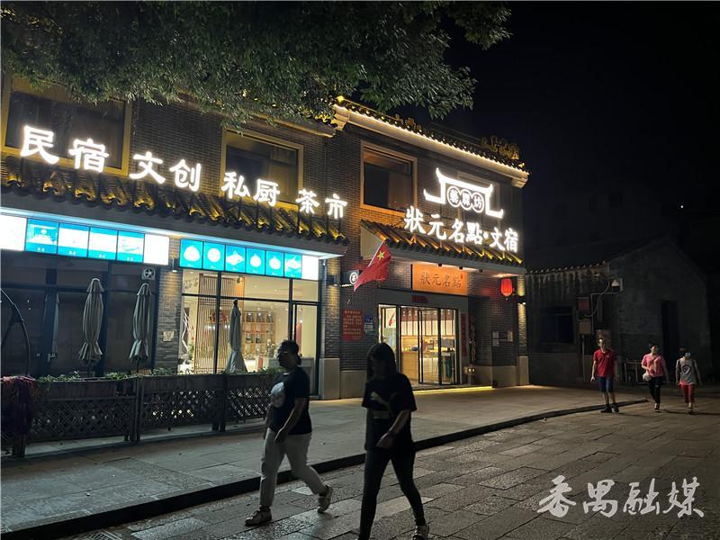 而在过去,包括阿祺在内的沙湾居民很难想象古镇的夜晚能这样灯光璀璨、人流不息。其实,带来如潮的“夜客”的是沙湾古镇这几年大力发展的民宿产业。近年来,迎着乡村振兴的春风,有着800年历史的小村子实现了美丽蝶变,看到古镇巨大变化的罗伯第一时间嗅到“商机”,经过一番筹划后,他在古镇里开办了民宿,吸引前来观光、旅游的游客住宿赏景,艺霖坊状元文宿就这样悄然诞生了。