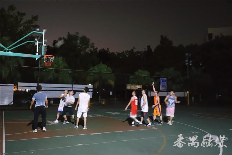 傍晚时分,位于广场一侧的篮球场人员爆满,篮球架早已被抢占完,球场边坐满了排队等候上场的人。刚参加工作的冯征每个周末的晚上都会约上朋友来这里打球,每次来球场都是“一架”难求,只能和别人商量轮流上场过过瘾。他说:“平时工作忙,没有时间运动,但周末我都会过来打球一个半小时到两个小时,打完篮球,身体舒展开了,感觉也很放松。”