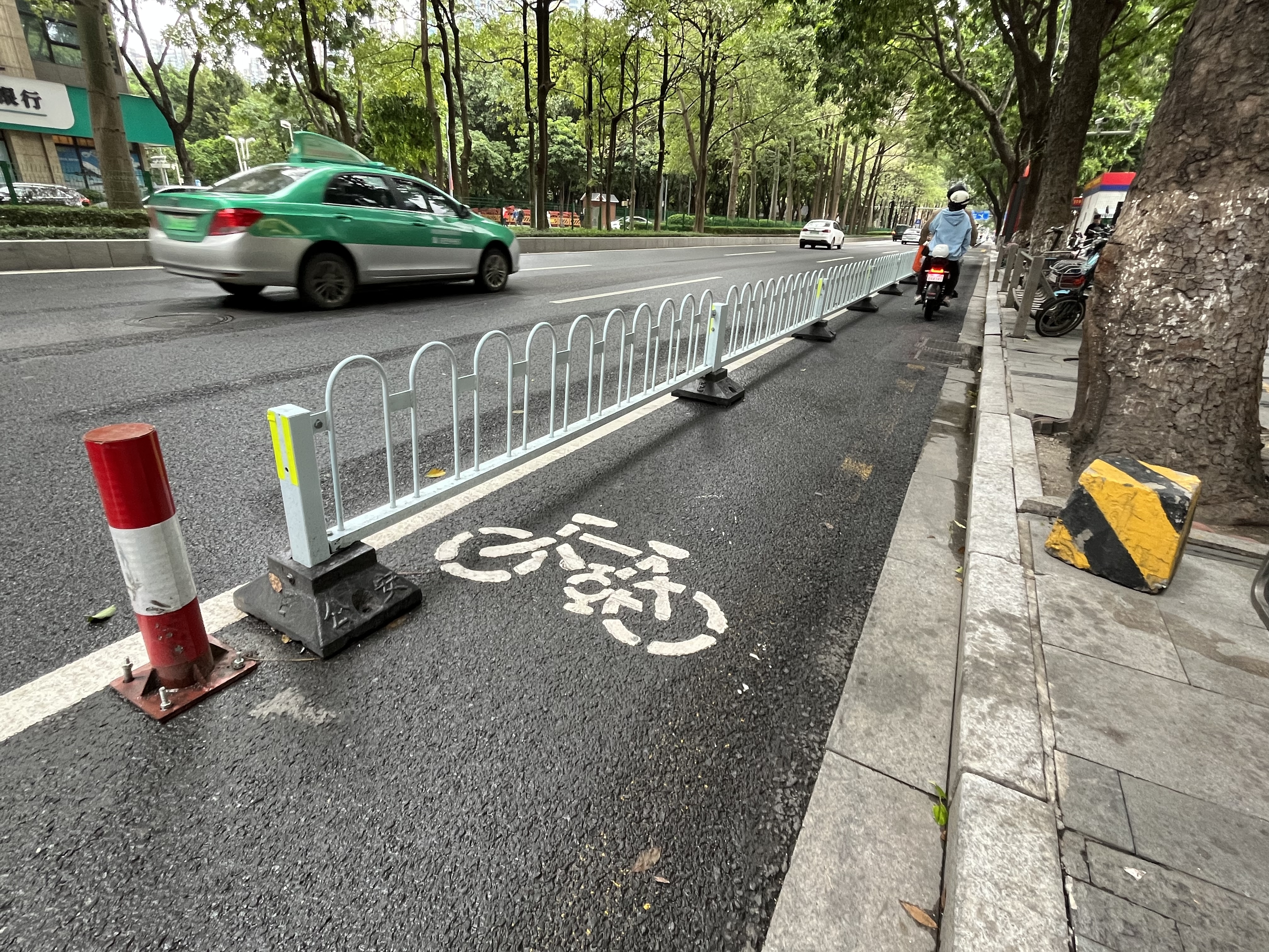 广州马场路划设非机动车道并增加了隔离护栏。
