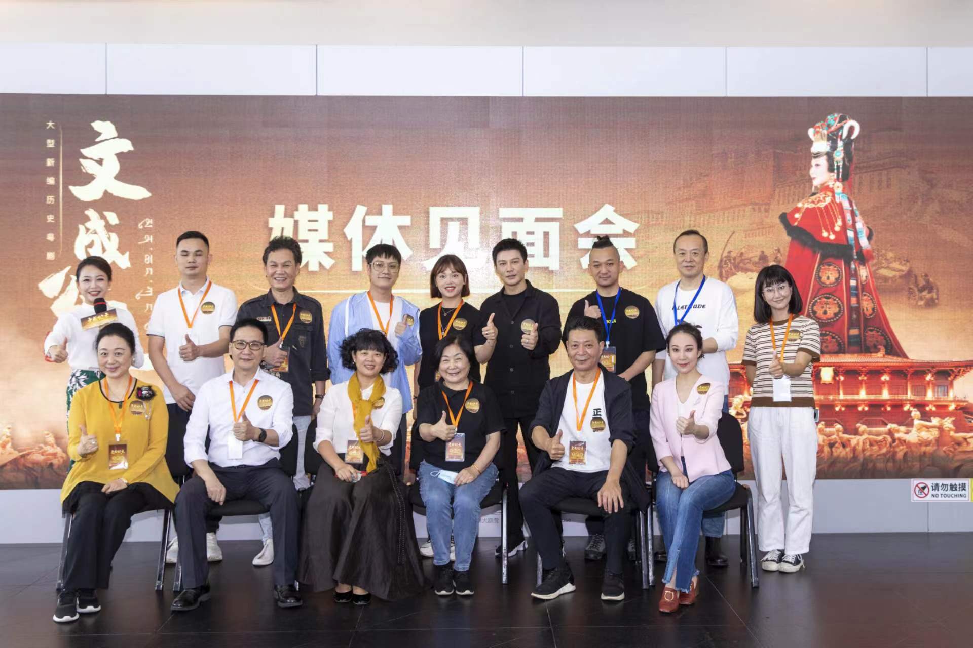 10月9日中午,大型新编历史粤剧《文成公主》媒体见面会在广州大剧院举行。该剧总导演童薇薇、主演李嘉宜、欧凯明、黎骏声、陈韵红,以及舞蹈编导欧阳丹、技导胡建华、服装设计阳东霖、多媒体设计胡天骥、灯光设计刘毓、造型设计姚钥、副导演胡翰驰和曾秋玲等多位主创团队成员集体亮相,分享该剧的创作构思、主题意蕴和表演体悟。