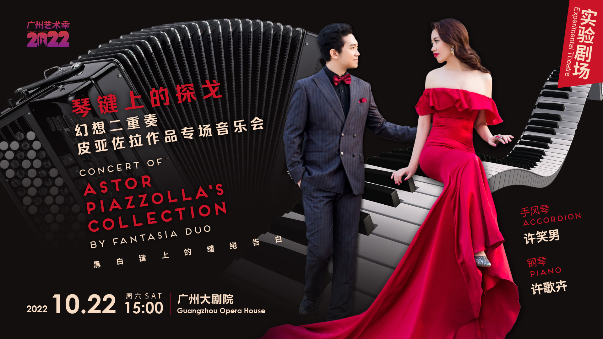 10月22日,琴键上的探戈——幻想二重奏皮亚佐拉作品专场音乐会将登陆广州艺术季2022,在广州大剧院实验剧场精彩上演。届时,“Fantasia /幻想”手风琴与钢琴二重奏的成员许笑男与其太太许歌卉将演奏多首皮亚佐拉的音乐作品。